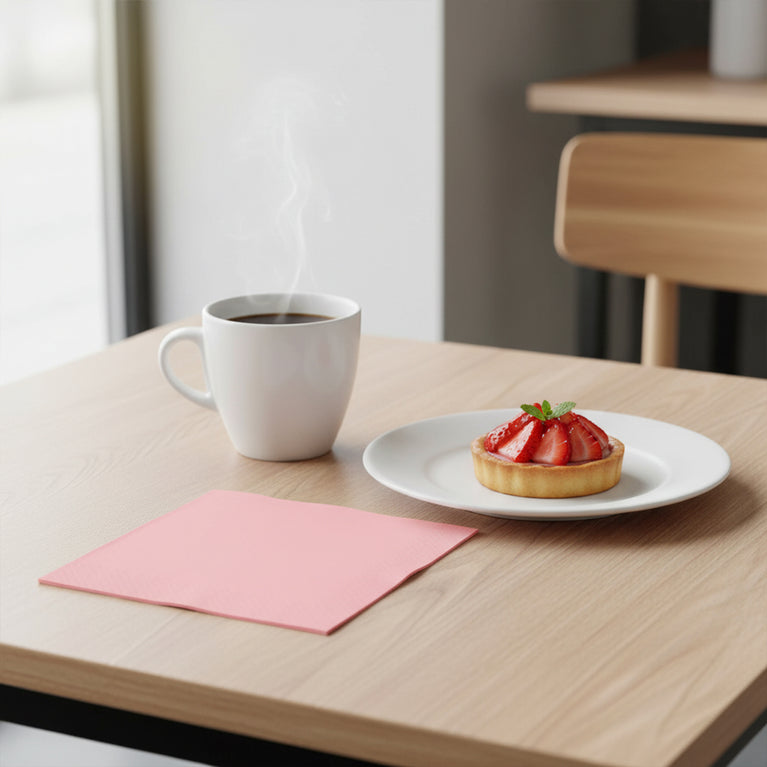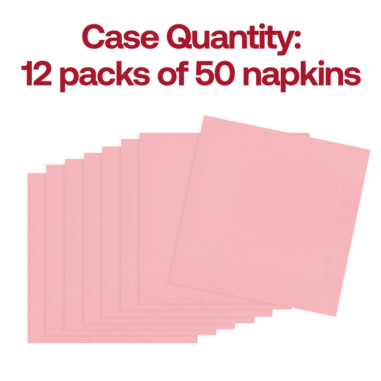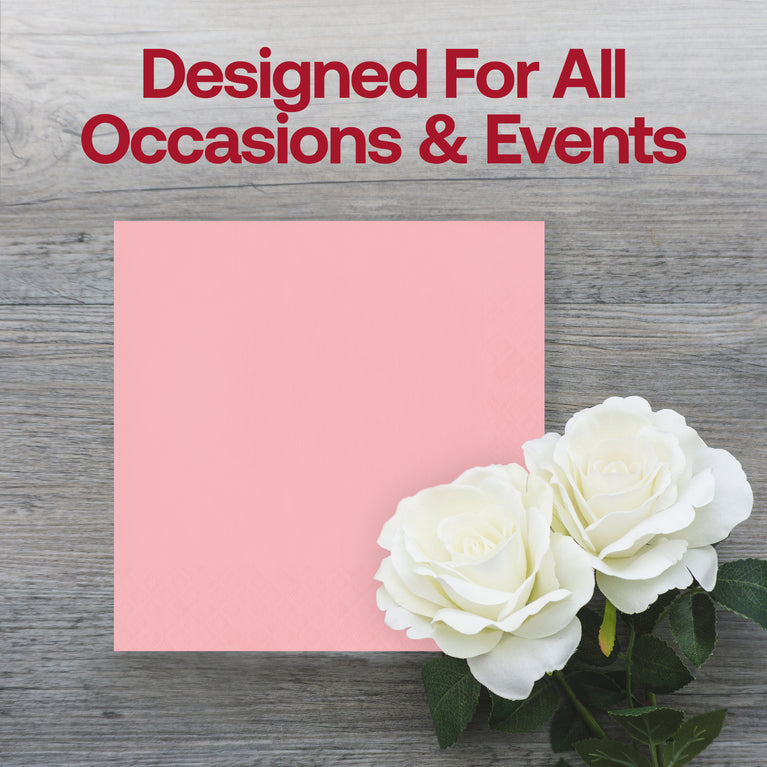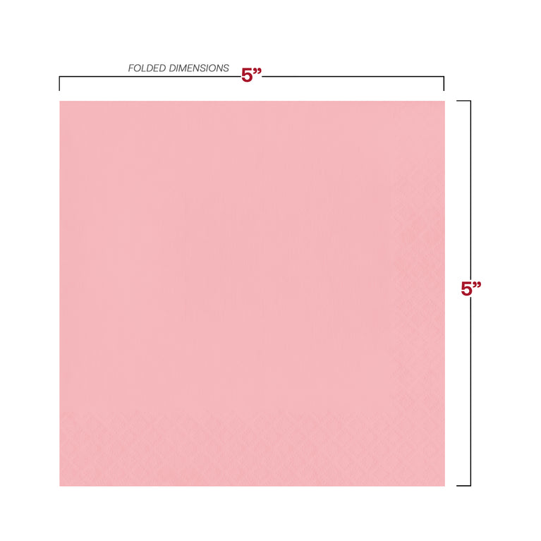When you want to round out your decor and set up a table with matching napkins along with the rest of your tableware, these beautiful classic pink paper cocktail napkins are the perfect addition to your table. These beautiful napkins are made of high-quality, disposable paper, and they're ideal for light appetizers, beverages, cocktails, or desserts.