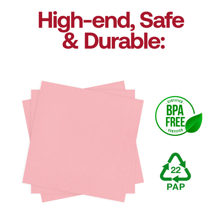 Fill your party with a chic sense of style with these elegant, disposable paper cocktail napkins with a classic pink color. Designed to look and feel premium, these paper cocktail napkins are great for parties and other gatherings. In addition, these disposable beverage napkins are a great way to keep your place clean and well organized.