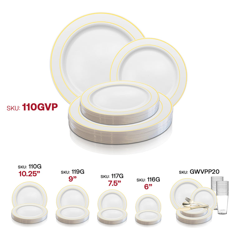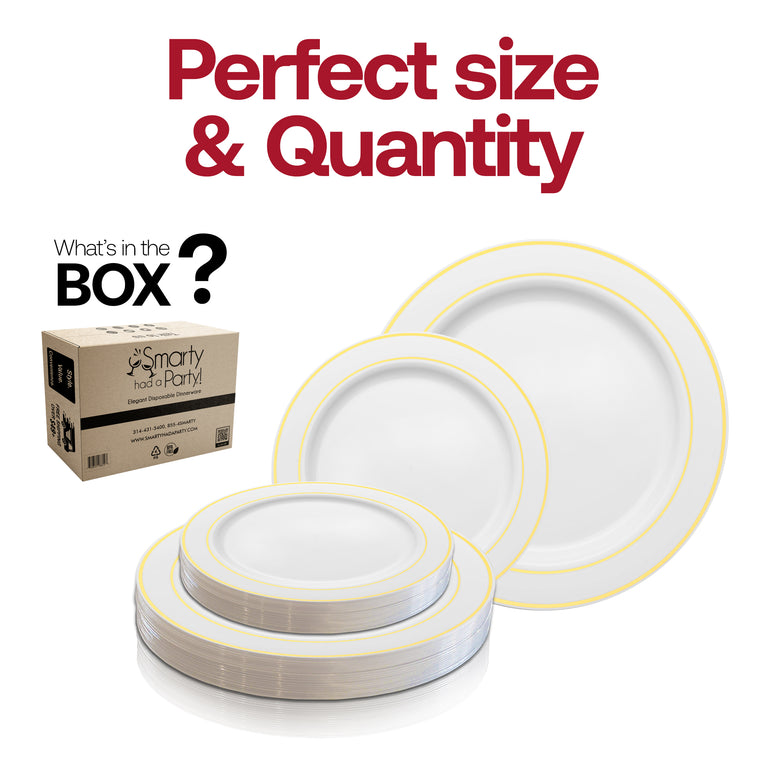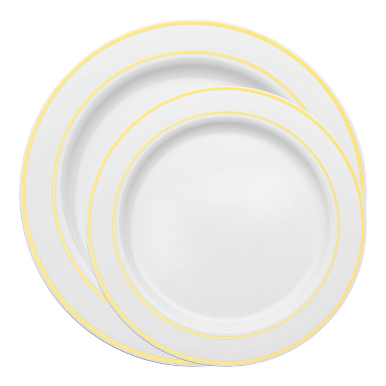White with Gold Edge Rim Plastic Dinnerware Value Set
