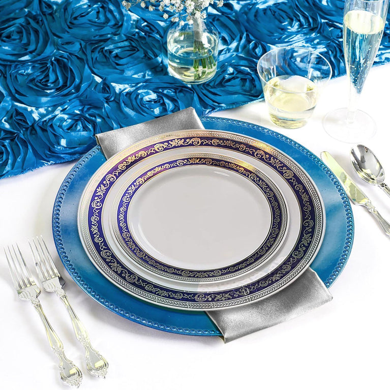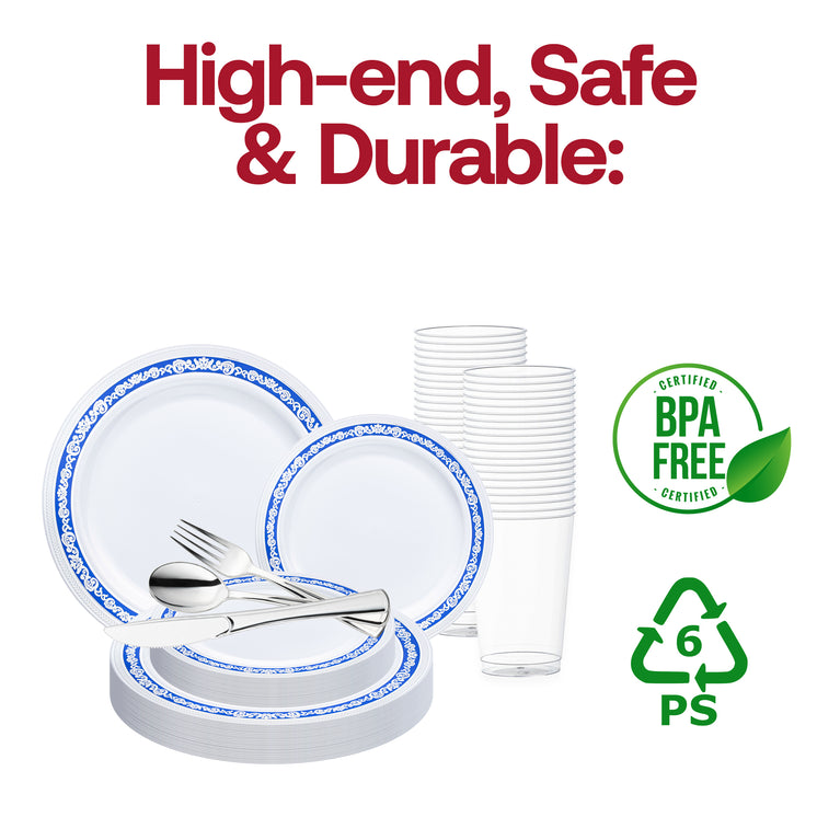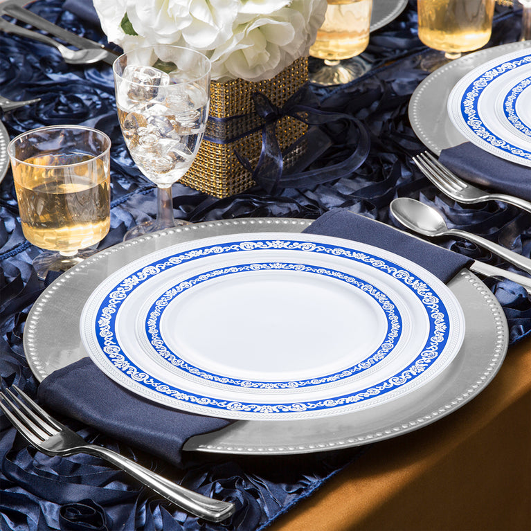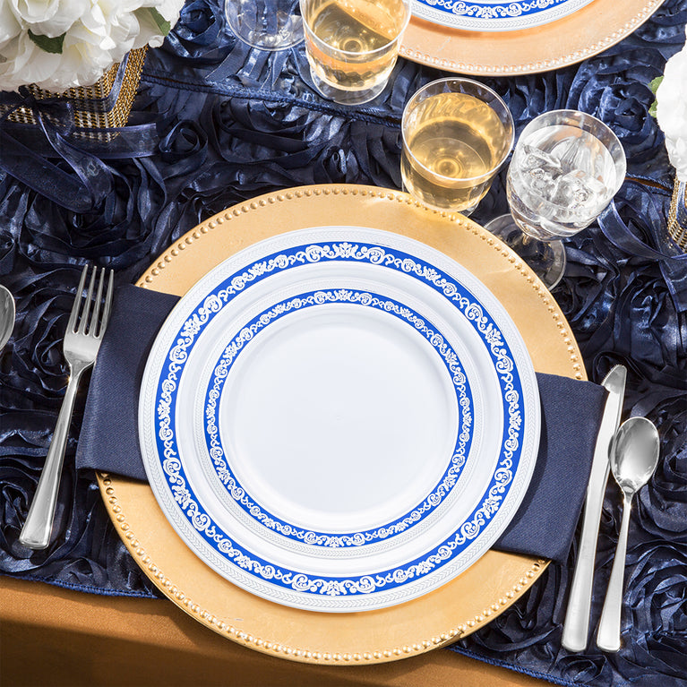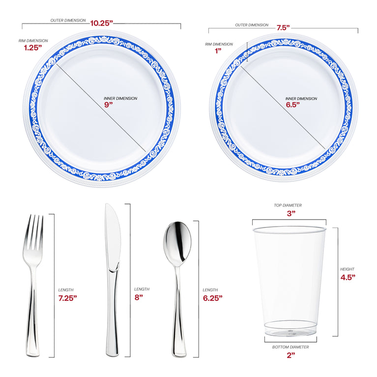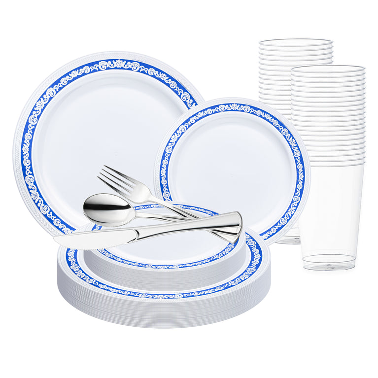 White with Blue and Silver Royal Rim Plastic Wedding Value Set
