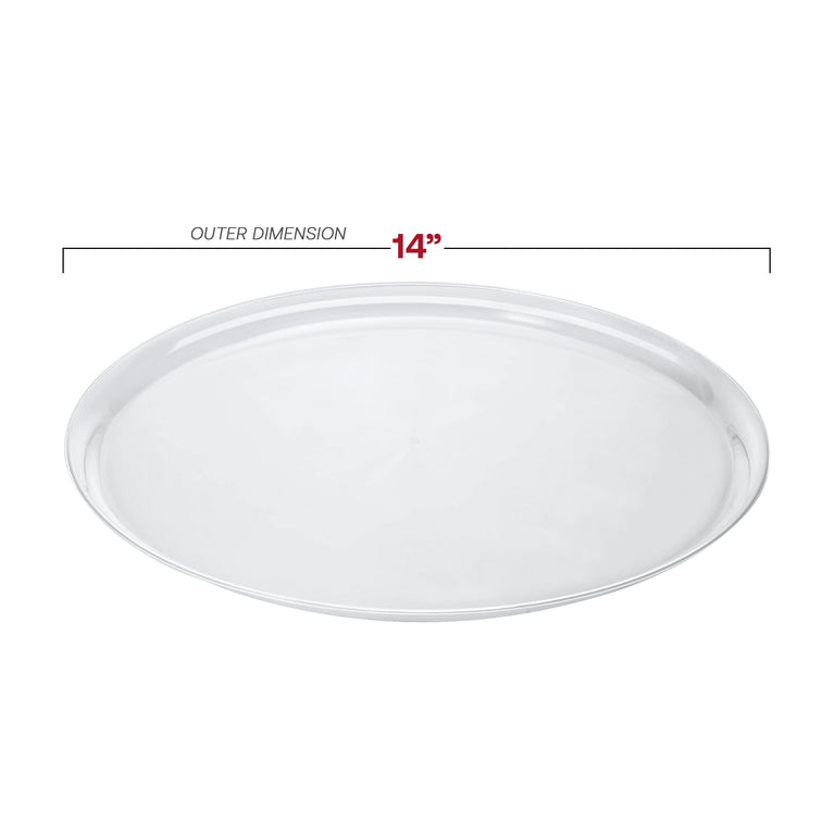 Make every event look professionally styled with these 14" Clear Round Plastic Trays. Designed to resemble glass but crafted from sturdy, shatter-resistant plastic, these serving trays offer a sleek, modern look for buffets, dessert tables, and appetizer stations. Their generous 14" size gives you plenty of room for charcuterie, pastries, finger foods, and more—ideal for both home hosts and professional caterers.