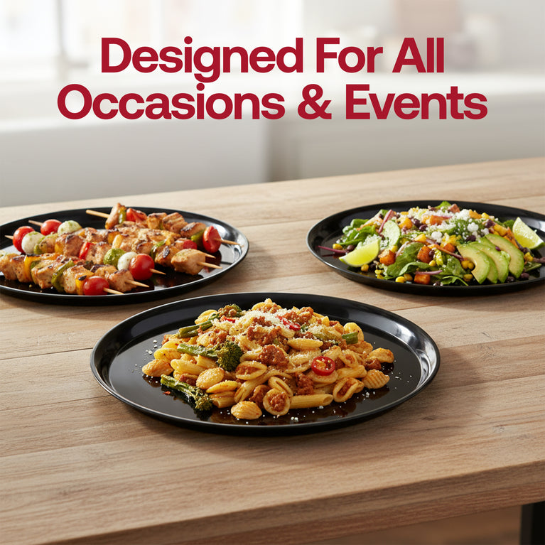 Whether you're setting up a self-serve buffet, creating a dessert station, or passing hors d'oeuvres, these round serving platters bring a coordinated, upscale look to weddings, birthdays, holiday dinners, and corporate events. Lightweight yet sturdy, they are easy to carry, stack, and transport—ideal for both home entertaining and professional catering.