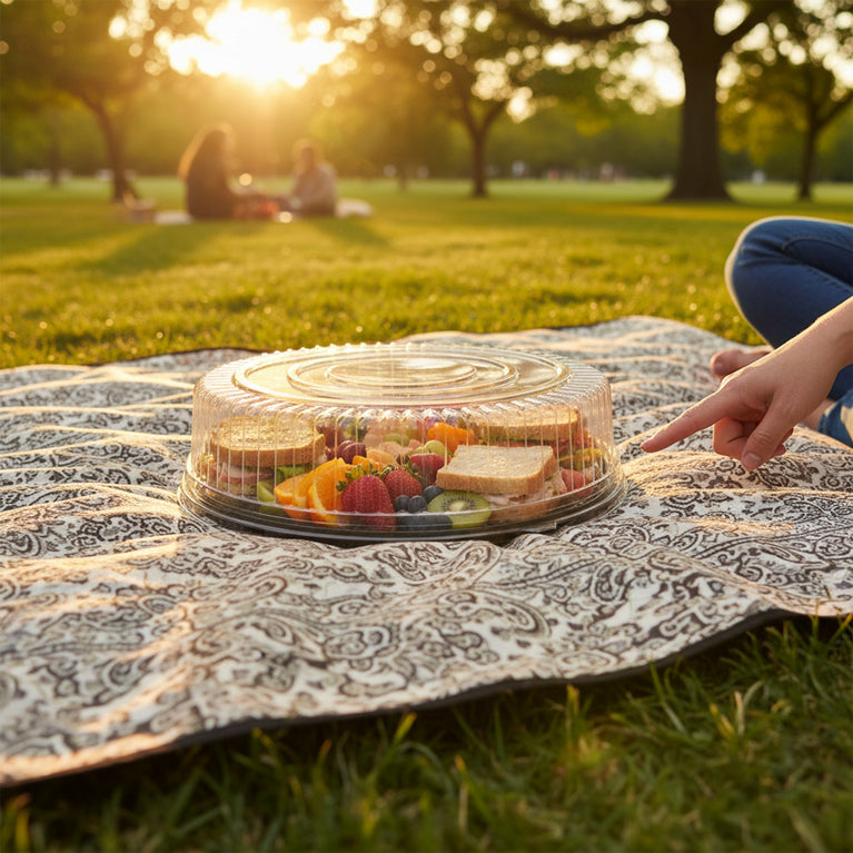 Crystal-Clear, Secure Covers for Every Party Platter Keep your beautifully arranged appetizers, desserts, and sandwiches fresh and protected with these 18" Clear Round Plastic Tray Lids. Designed to fit standard 18-inch round plastic serving trays, these disposable tray covers are perfect for caterers, event planners, and home hosts who want a polished presentation without the stress. The dome-style, crystal-clear design lets guests admire every delicious detail while keeping food safely covered during transport and display. Made from sturdy, food-safe plastic,...