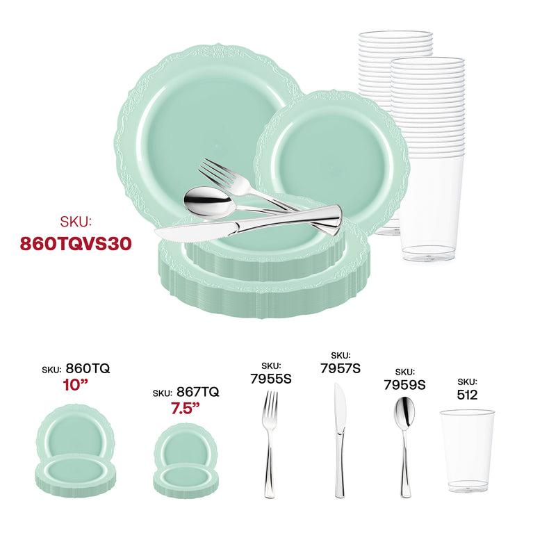Turquoise Vintage Round Disposable Plastic Wedding Value Set