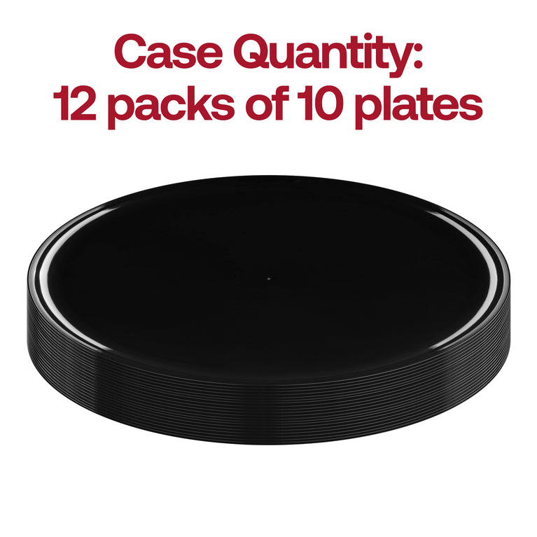 Black Flat Round Disposable Plastic Dinner Plates (10")