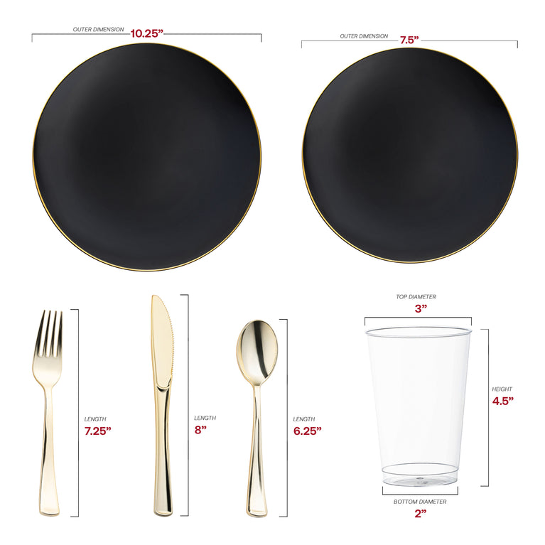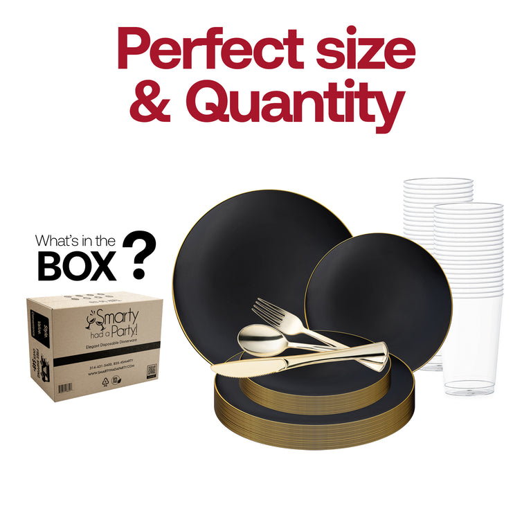 Black with Gold Rim Organic Round Disposable Plastic Wedding Value Set