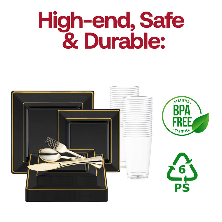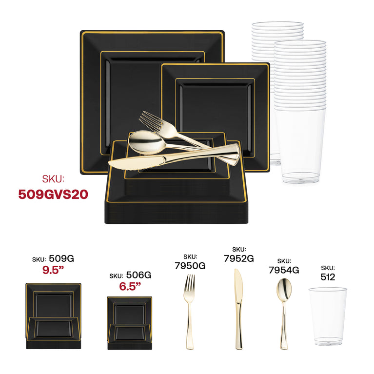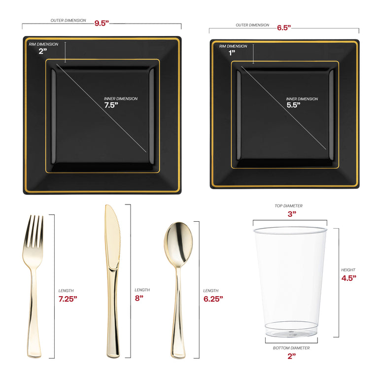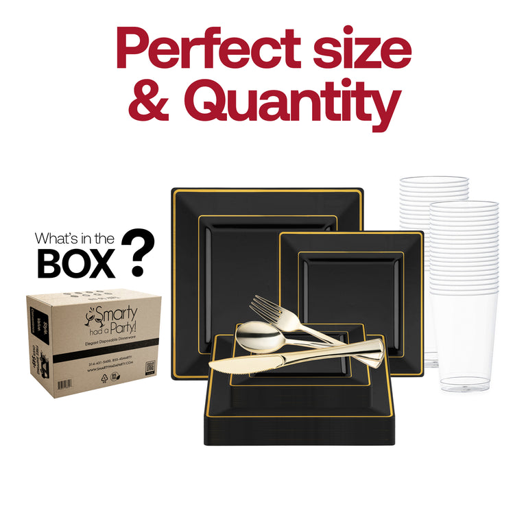 Black with Gold Square Edge Rim Plastic Wedding Value Set