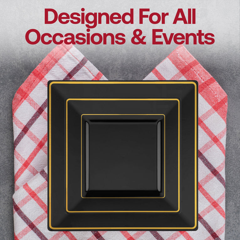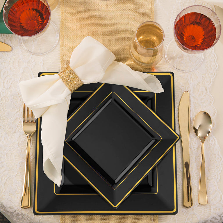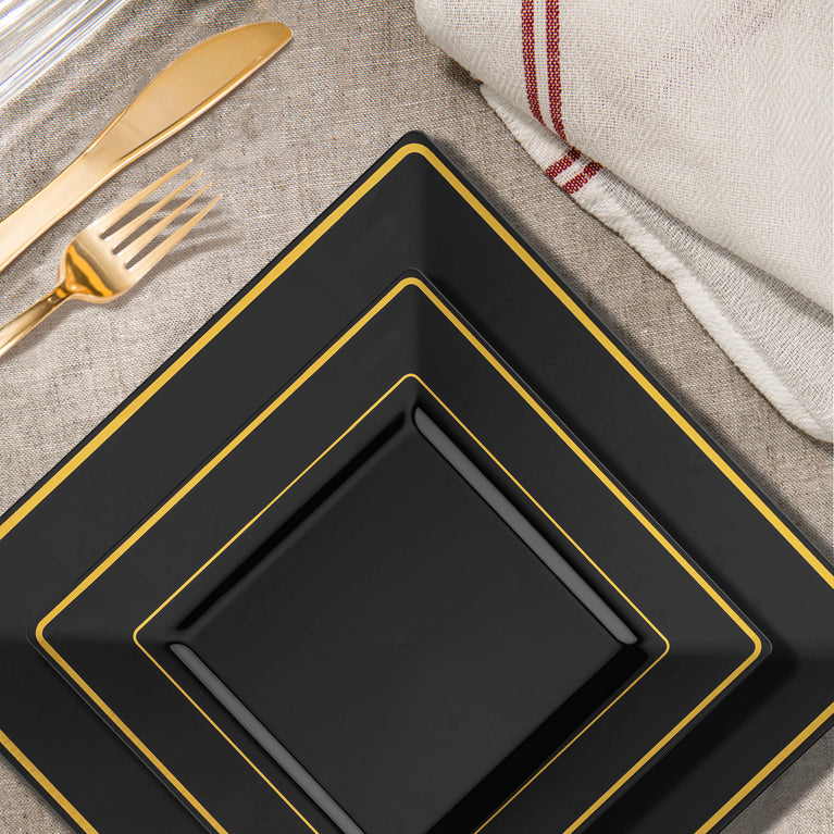 - Plates: Black with Gold Square Edge Rim