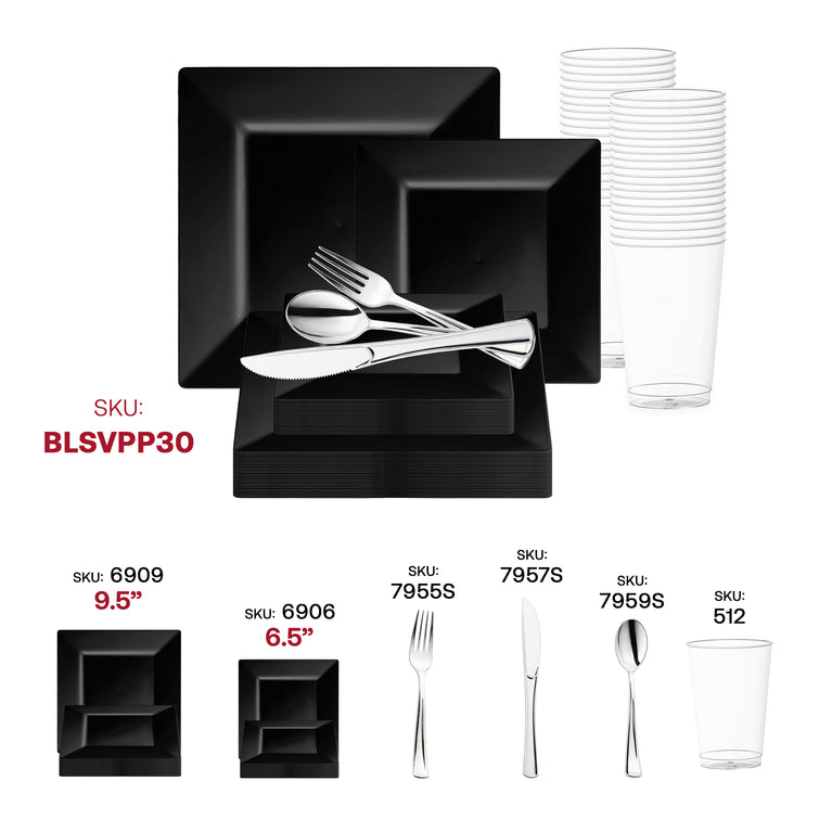 - Service for 30: 30 Dinner plates, 30 salad plates, 30 forks, 30 spoons, 30 knives and 30 12 oz. Tumblers
