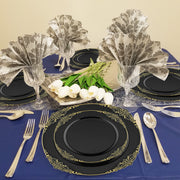 Add a touch of glamour to your next celebration or gathering, and make every meal a memorable experience with our fancy black with gold disposable plastic salad plates, a perfect blend of sophistication and convenience. Crafted to meet the highest standards of style and durability, these 7.5-inch plates are ideal for both casual gatherings and formal events, adding a touch of elegance to any occasion.