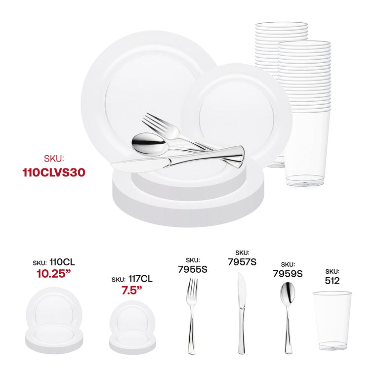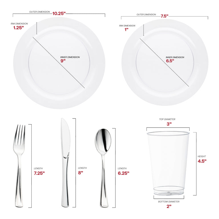 Crystal-Clear Elegance for Unforgettable Wedding Celebrations Set the tone for your special day with the Clear Round Plastic Wedding Value Set, which combines elegance, convenience, and durability. Designed to mimic the look of glass while offering the practicality of disposable wedding plates, this coordinated set is perfect for receptions, rehearsal dinners, and any celebration where style matters. With crystal-clear round dinner and salad plates, matching tumblers, and a sleek plastic cutlery set, your wedding table will look polished and cohesive...