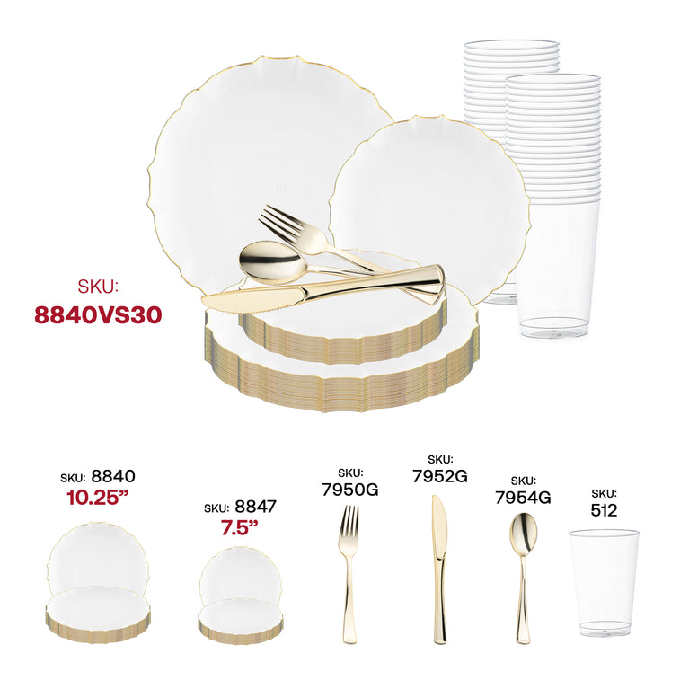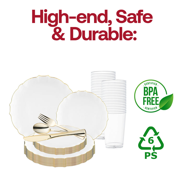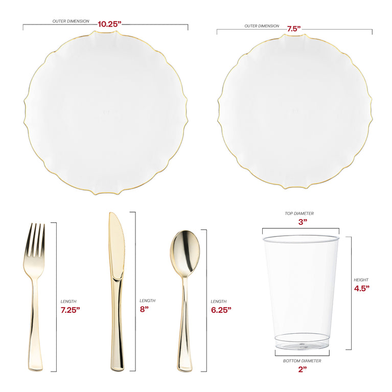 Clear with Gold Rim Round Lotus Plastic Wedding Value Set