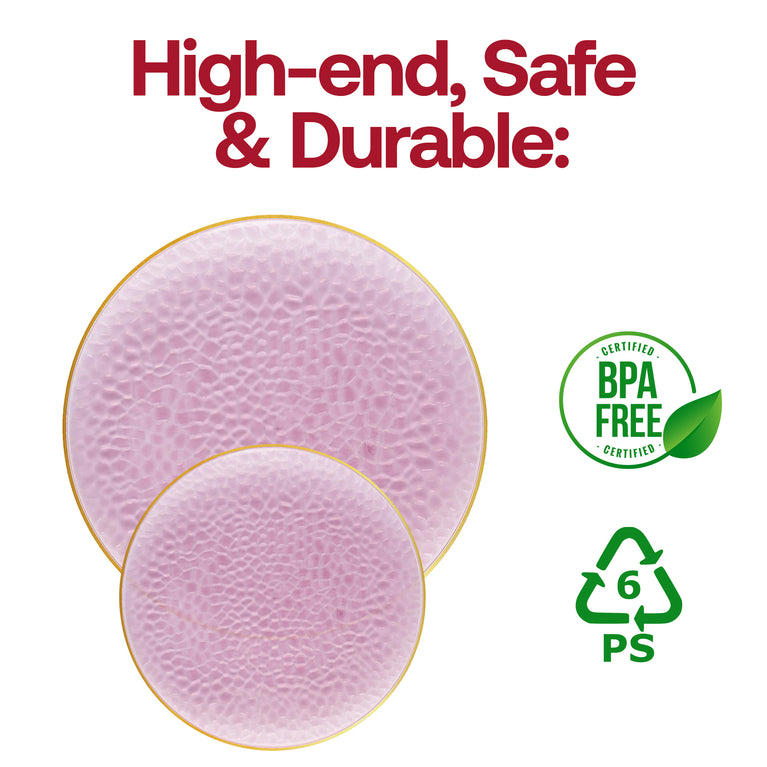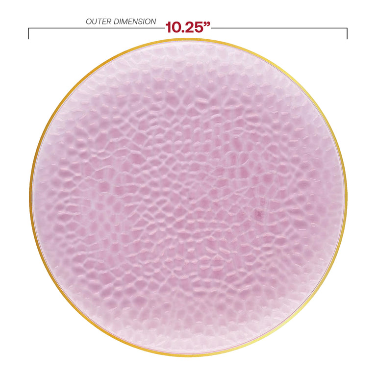 - Product Name: Clear Pink with Gold Rim Hammered Glass Disposable Plastic Dinner Plates (10.25")