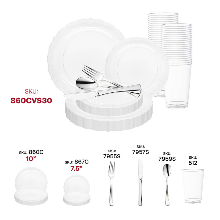 Clear Vintage Round Disposable Plastic Wedding Value Set