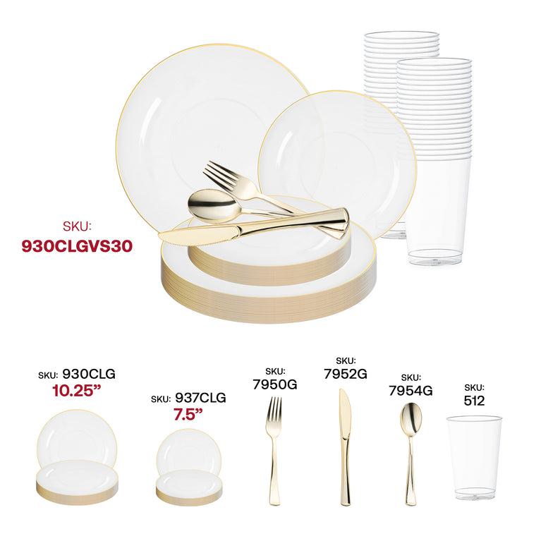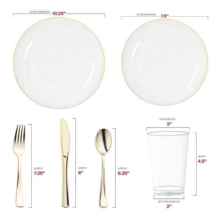 Clear with Gold Rim Organic Round Plastic Plastic Wedding Value Set
