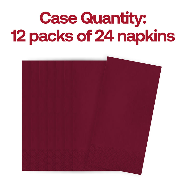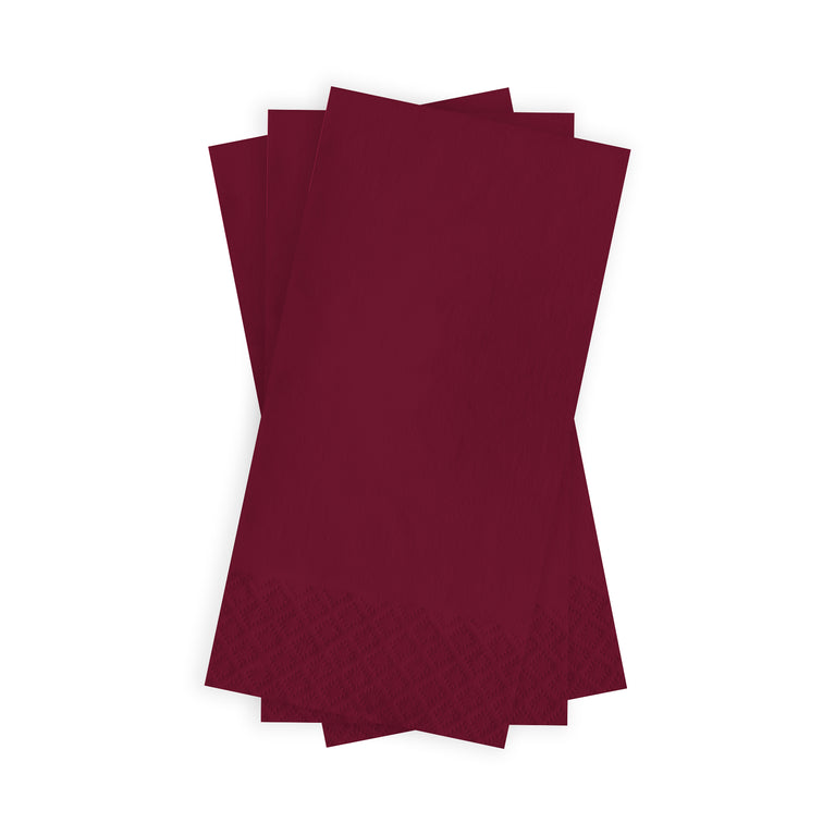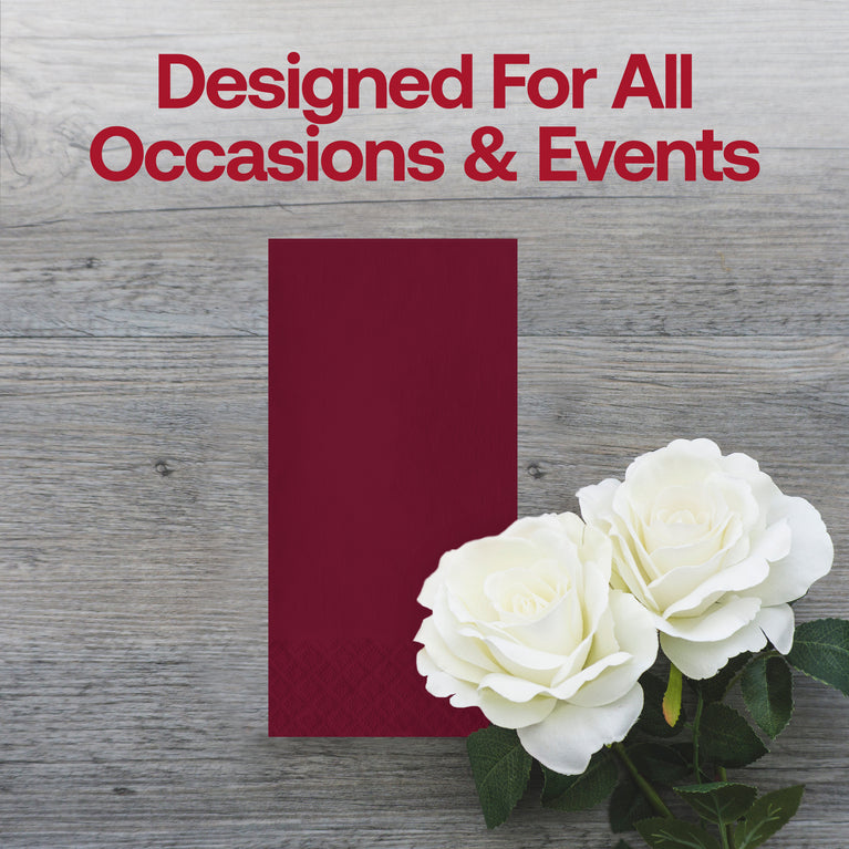 High-quality paper and convenience of disposable use are characteristics that make these napkins an irresistible product for every special event. Burgundy Paper Dinner Napkins are the ultimate for your dinner table. These linen cloth-like dinner napkins are perfect for special events, such as birthday parties, full-blown celebrations, showers or home, business settings, wedding buffets, or even if you are just entertaining friends at home at a dinner party or barbecue.