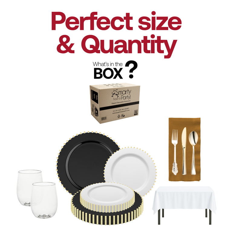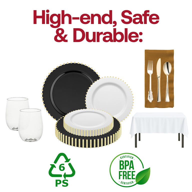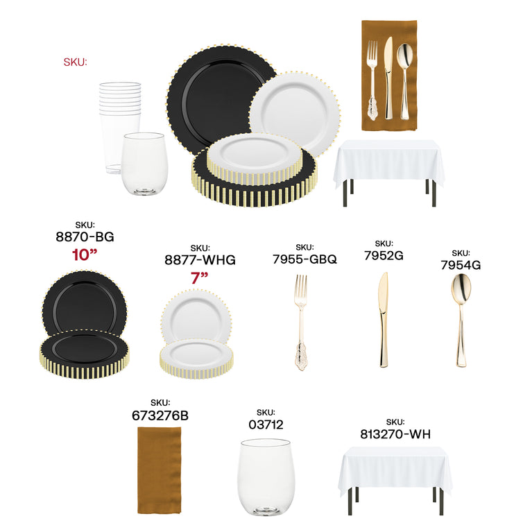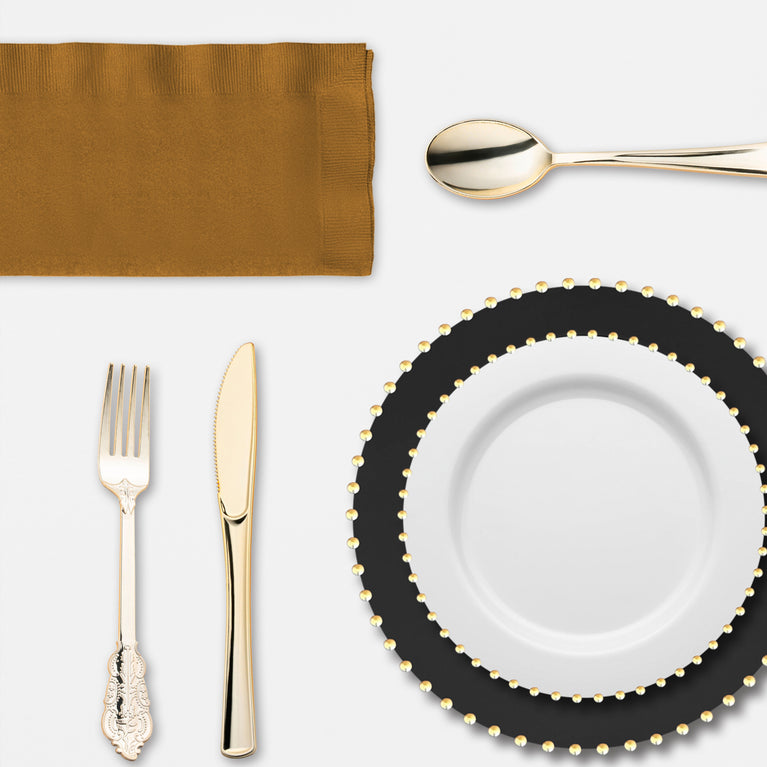 - Dinner Plates: Black with Gold