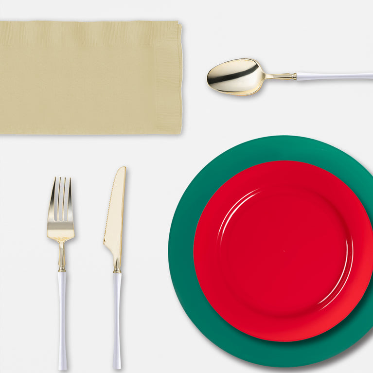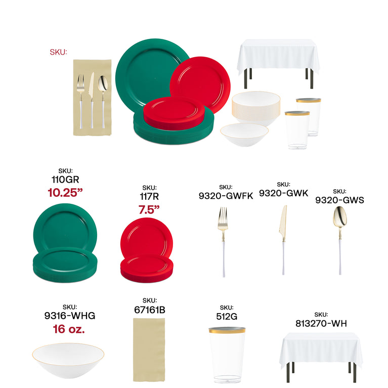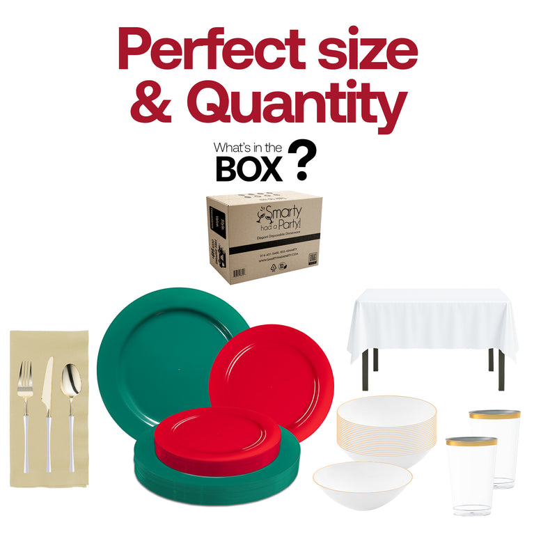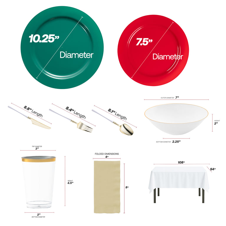 - Service for 20: 20 Dinner Plates, 20 Salad Plates, 20 Soup Bowls, 20 Forks, 20 Spoons, 20 Knives, 4 Tablecloths, 50 Dinner Napkins and 20 Tumblers
