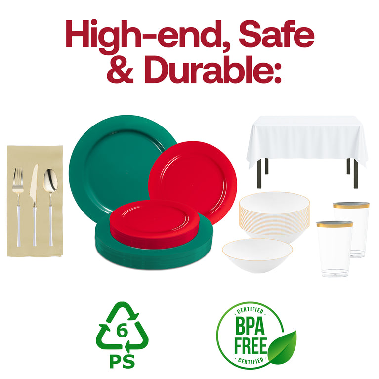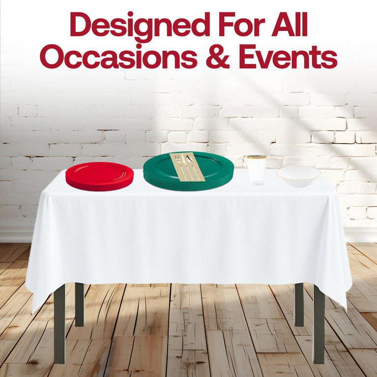- Service for 60: 60 Dinner Plates, 60 Salad Plates, 60 Soup Bowls, 60 Forks, 60 Spoons, 60 Knives, 8 Tablecloths, 100 Dinner Napkins and 60 Tumblers