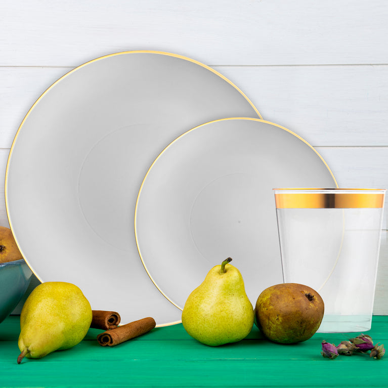 Gray with Gold Organic Disposable Plastic Tableware Set