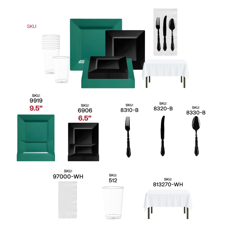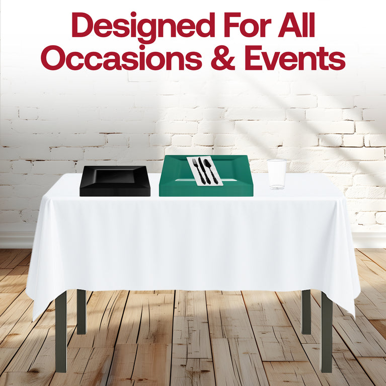 - Service for 60: 60 Dinner Plates, 60 Cake Plates, 60 Forks, 60 Spoons, 60 Knives, 8 Tablecloths, 100 Dinner Napkins and 60 Cups