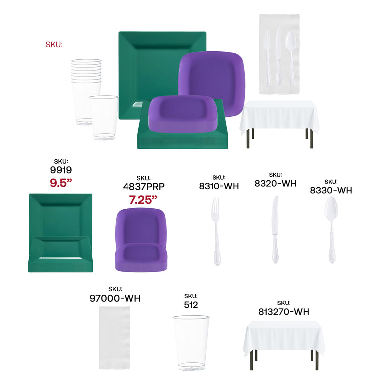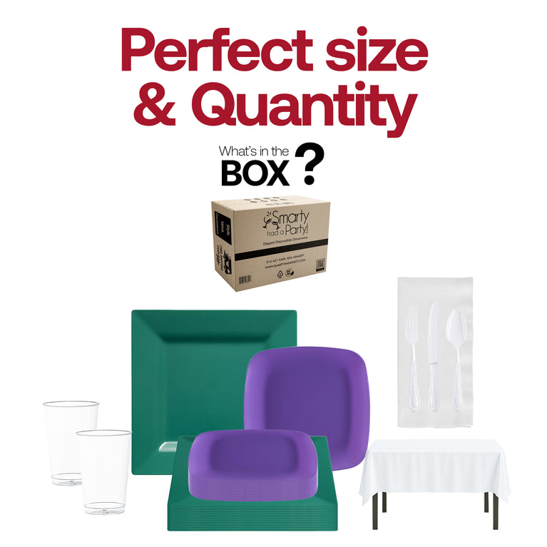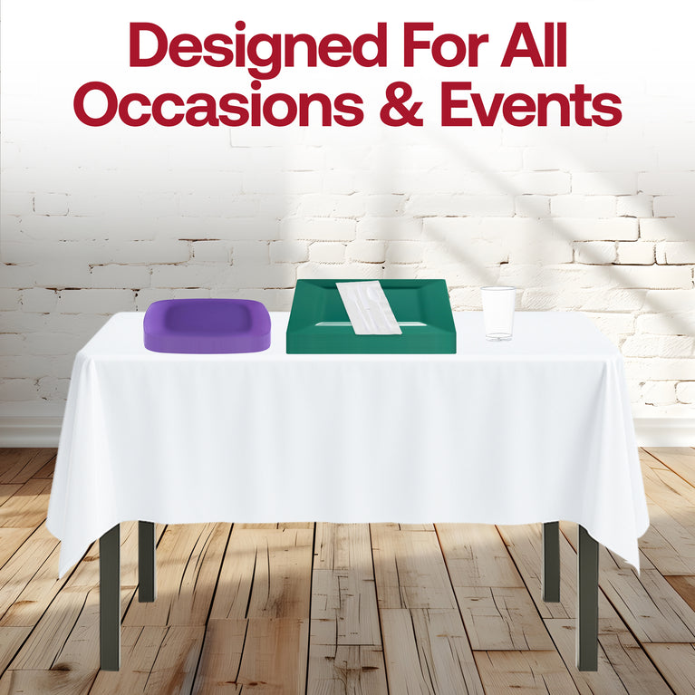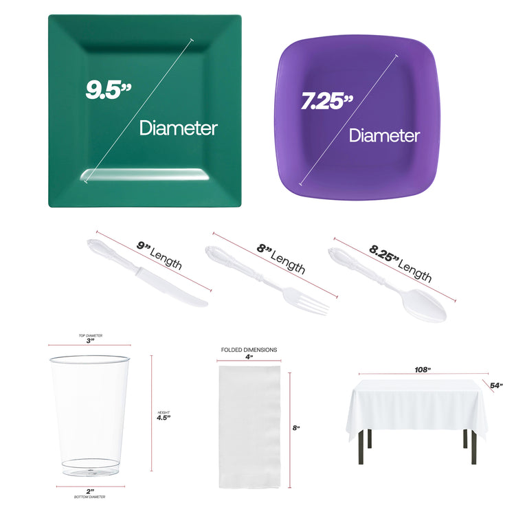 - Service for 60: 60 Dinner Plates, 60 Salad Plates, 60 Forks, 60 Spoons, 60 Knives, 8 Tablecloths, 100 Dinner Napkins and 60 Cups