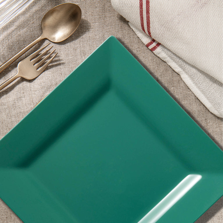 Plates do come in more than one shape, though many will choose not to explore that concept. They also come in more than one color, though they may choose not to examine that for similar reasons. Why not push expectation to the side and deliberately engage with something alternative in the best possible way? These gorgeous hunter-green square dinner plates are the natural choice for designing the perfect table setting as an ideal backdrop for your carefully prepared food. Carefully...