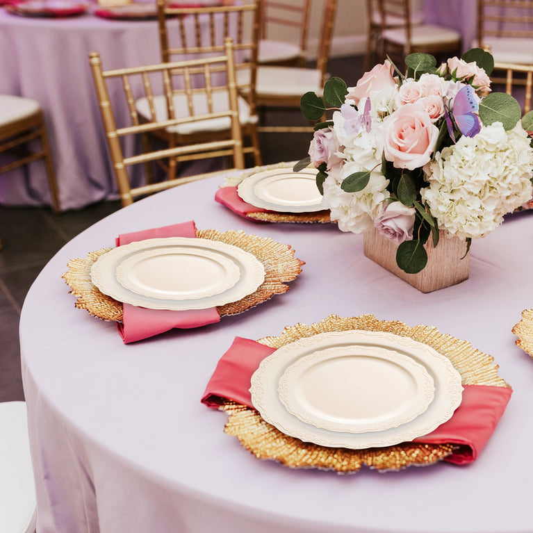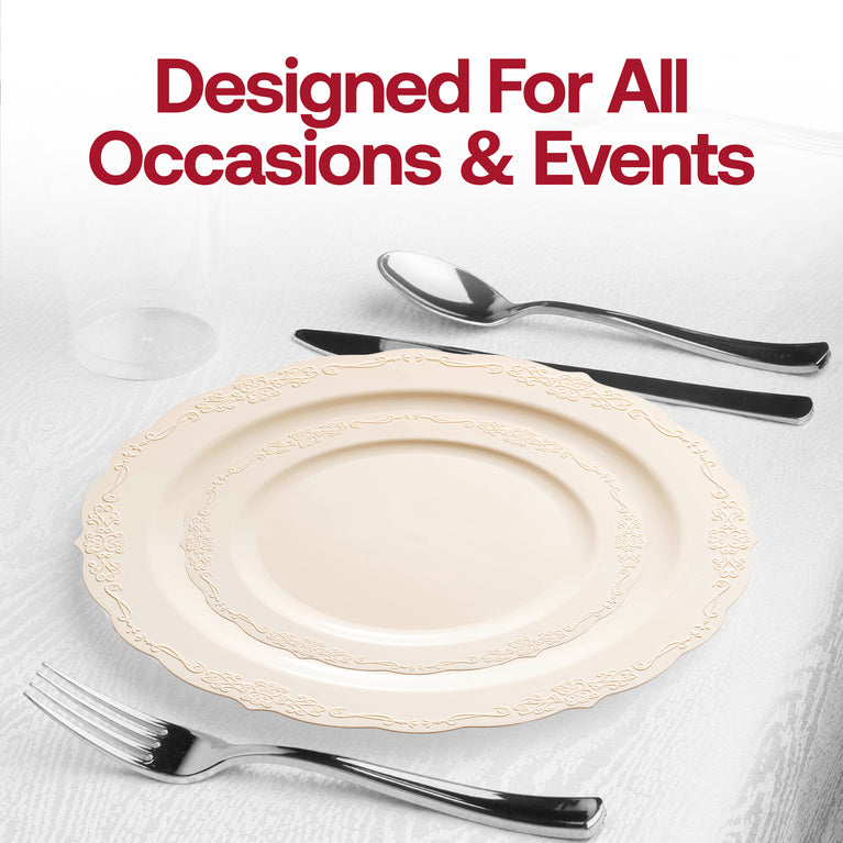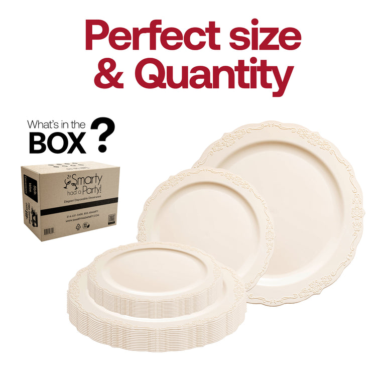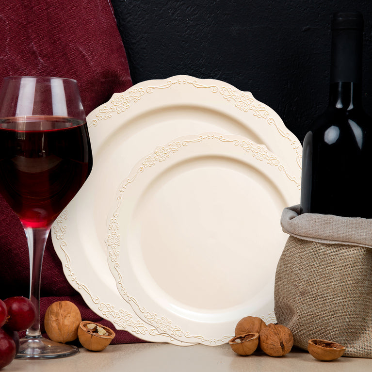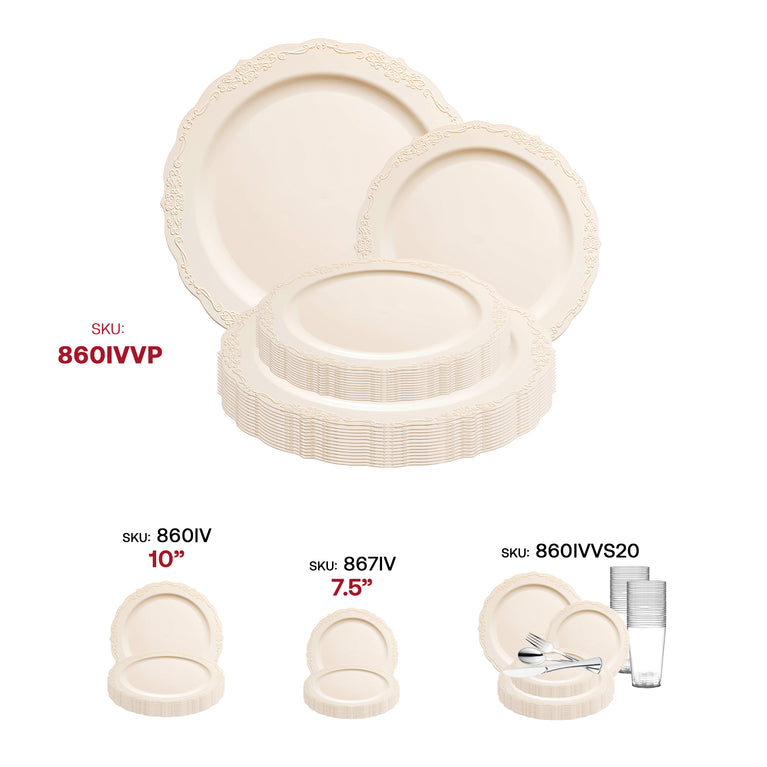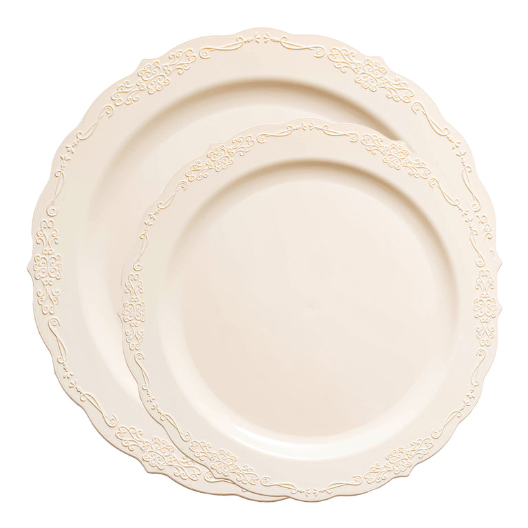 Ivory Vintage Round Disposable Plastic Dinnerware Value Set