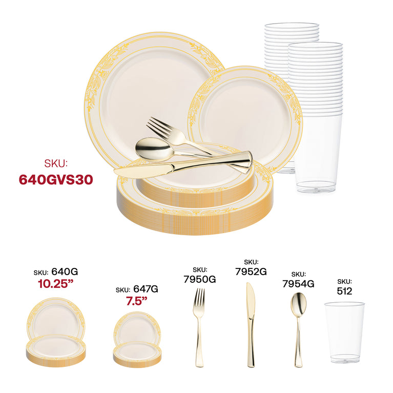 Ivory with Gold Harmony Rim Plastic Wedding Value Set