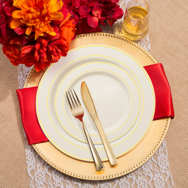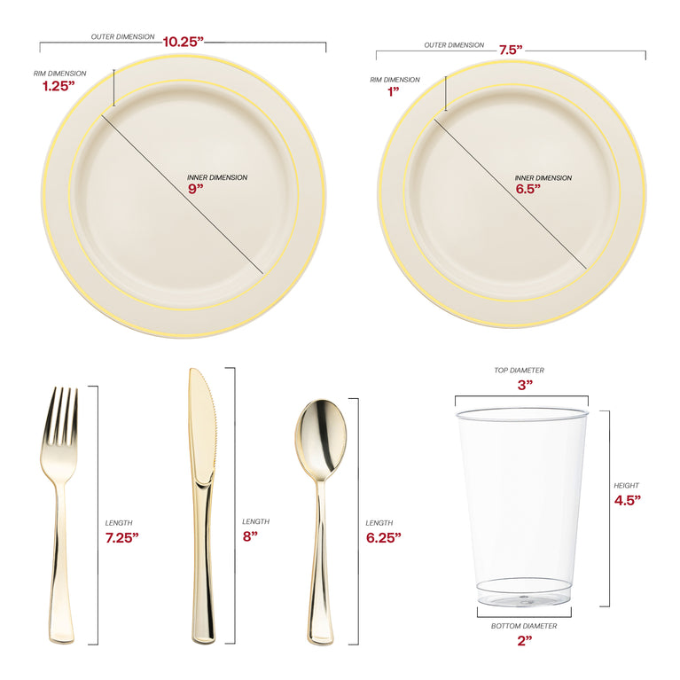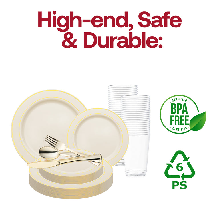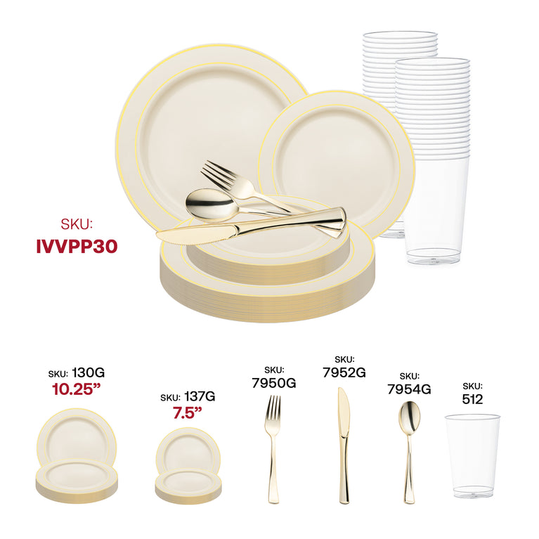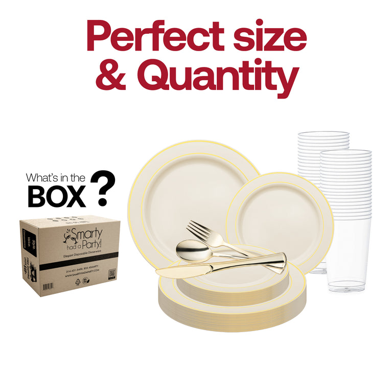 Ivory with Gold Edge Rim Plastic Wedding Value Set