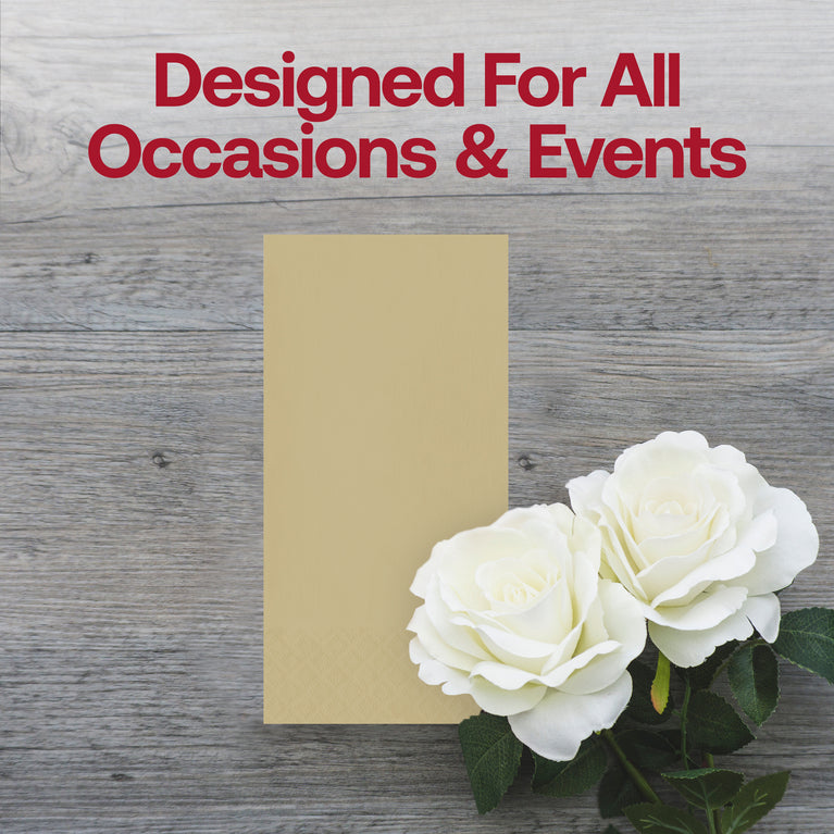 Our exquisite disposable paper dinner napkins have the look and feel of linen. They are made of breathable paper materials, which feel like fabric, providing a clean and hygienic dining experience every time. The premium quality paper used to craft these lovely napkins makes them feel very similar to a soft linen napkin. They are soft yet durable, they don't itch, and they don't draw the skin.