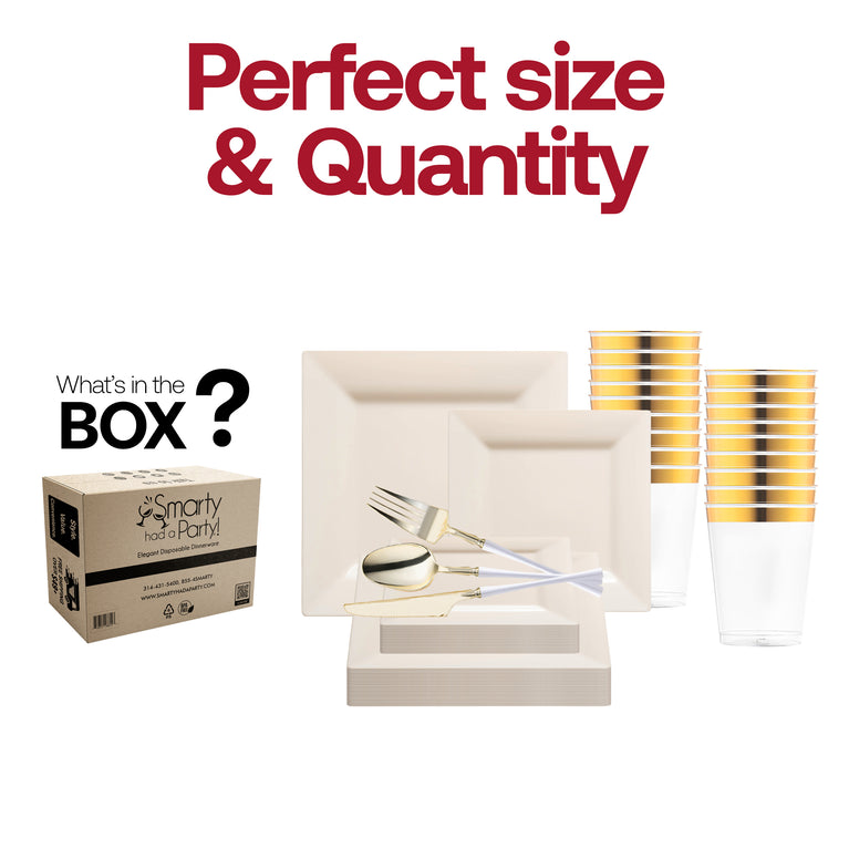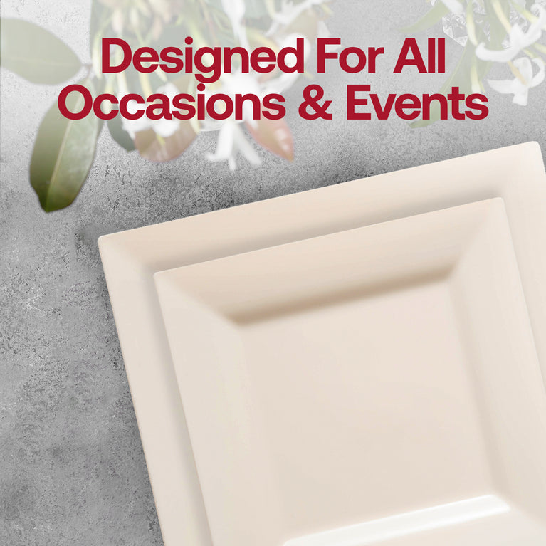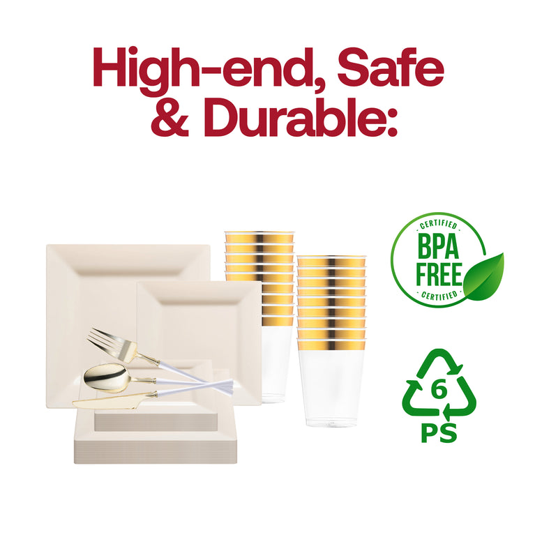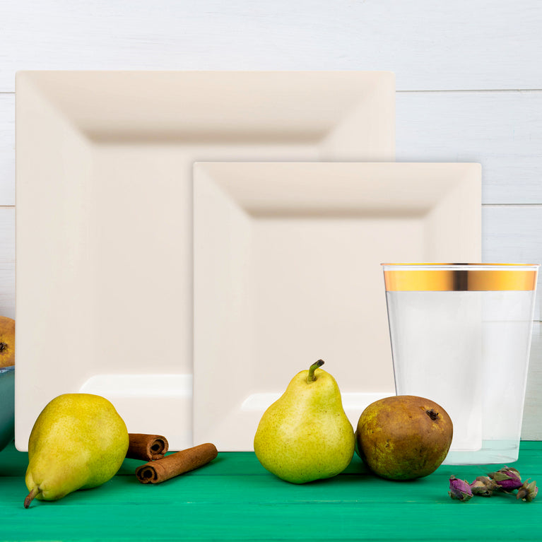 Ivory Square Disposable Plastic Tableware Set