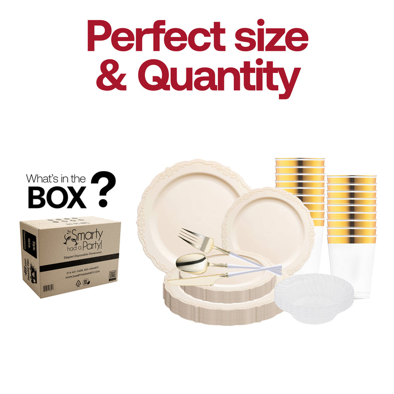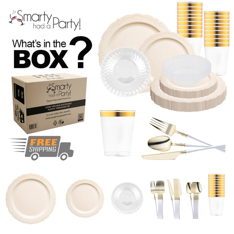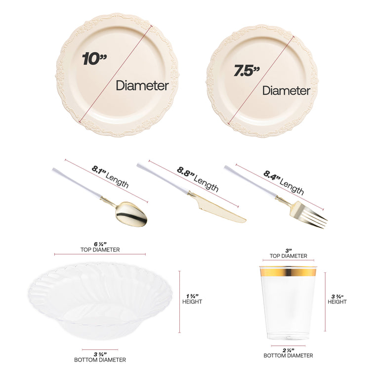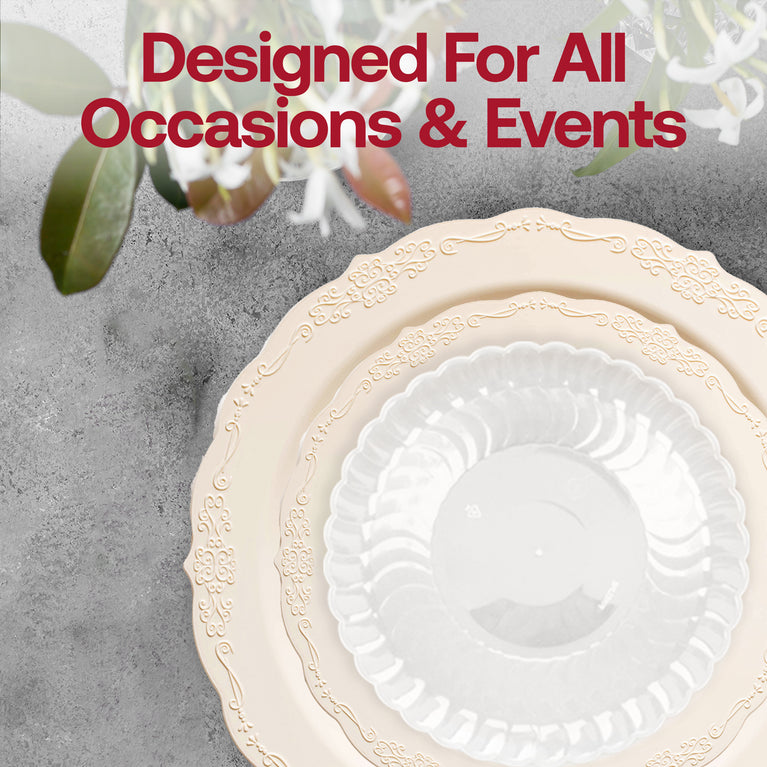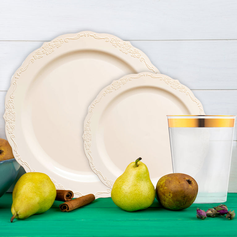 Ivory Vintage Disposable Plastic Tableware Set