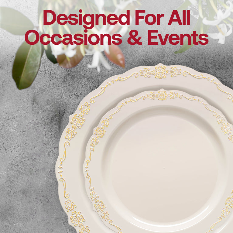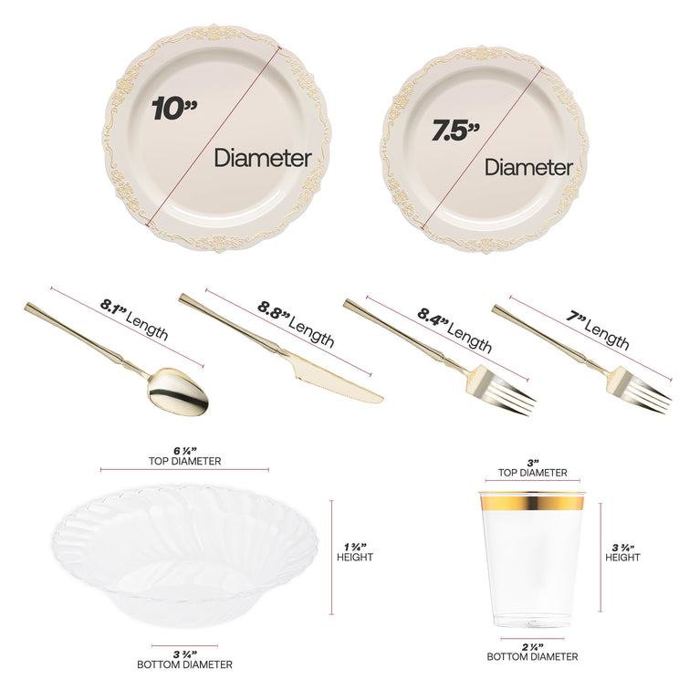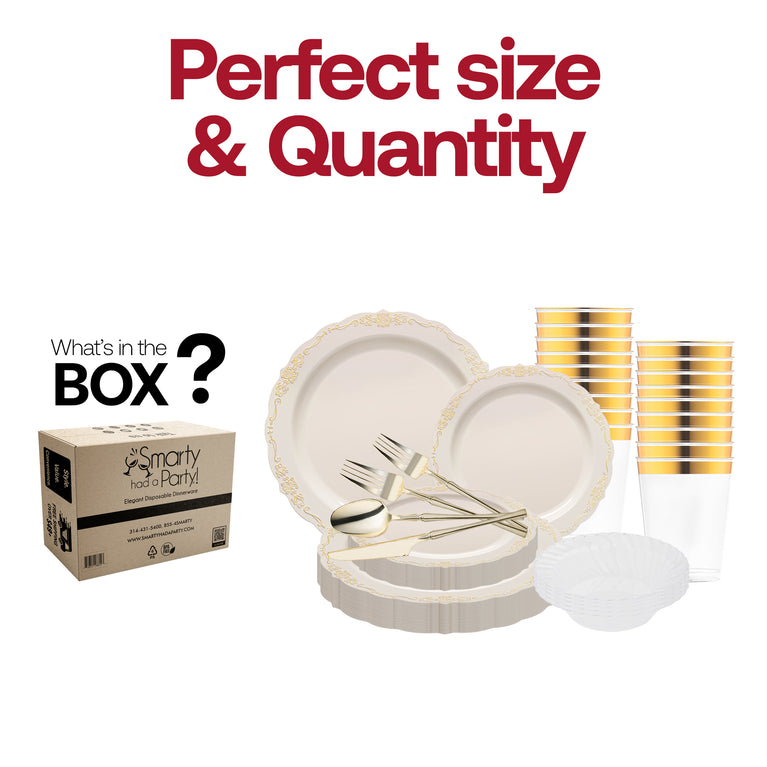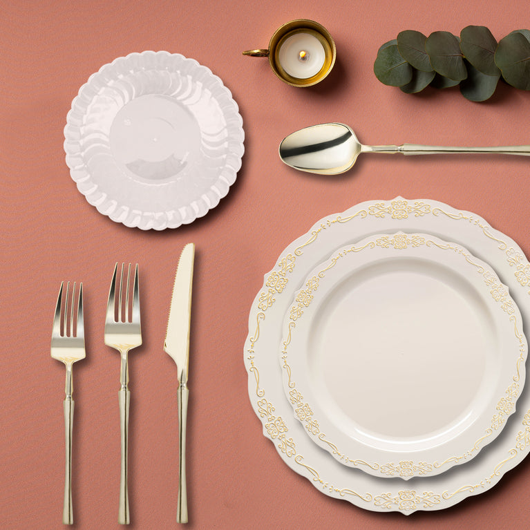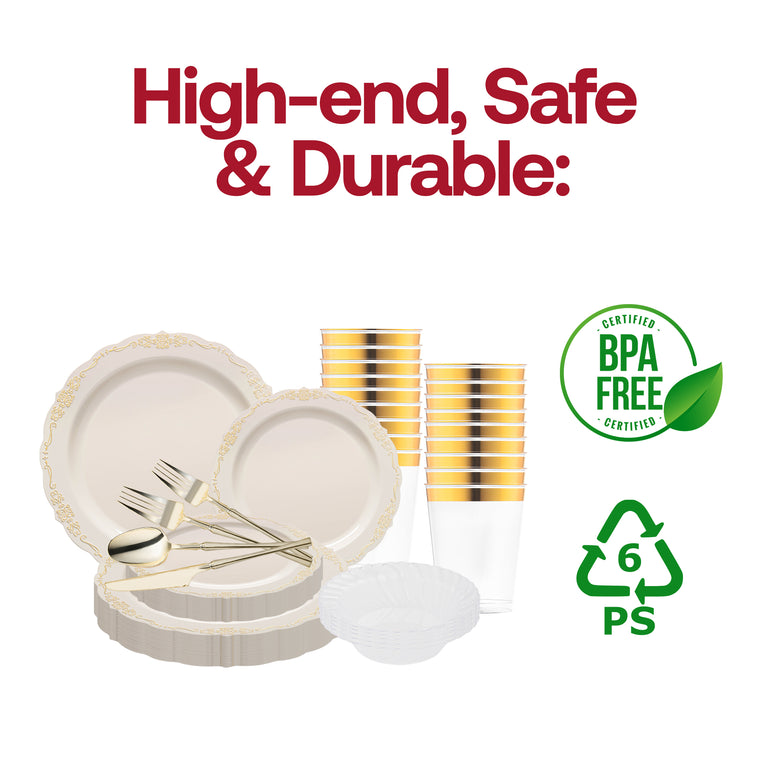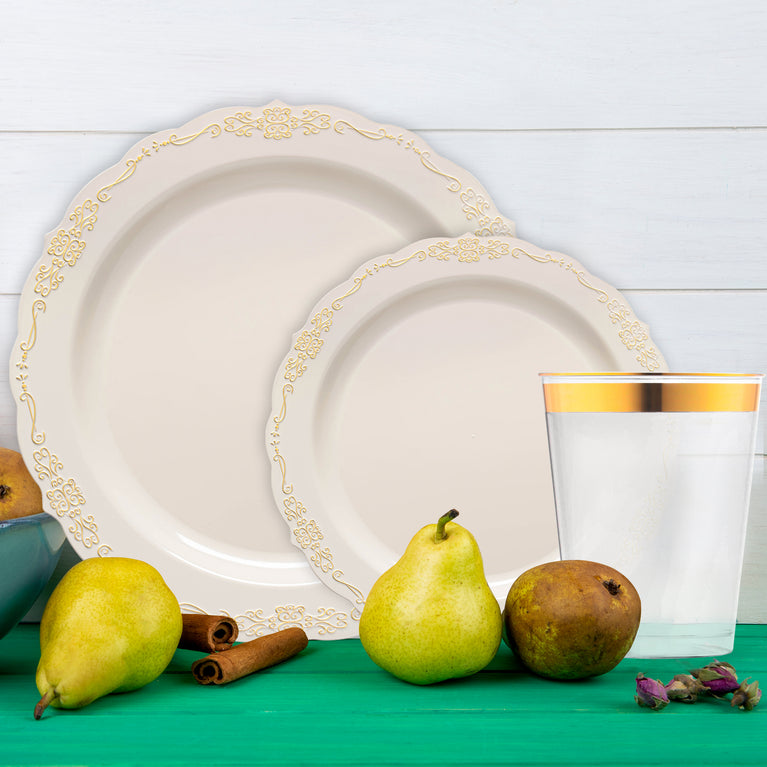 Ivory with Gold Vintage Disposable Plastic Tableware Set