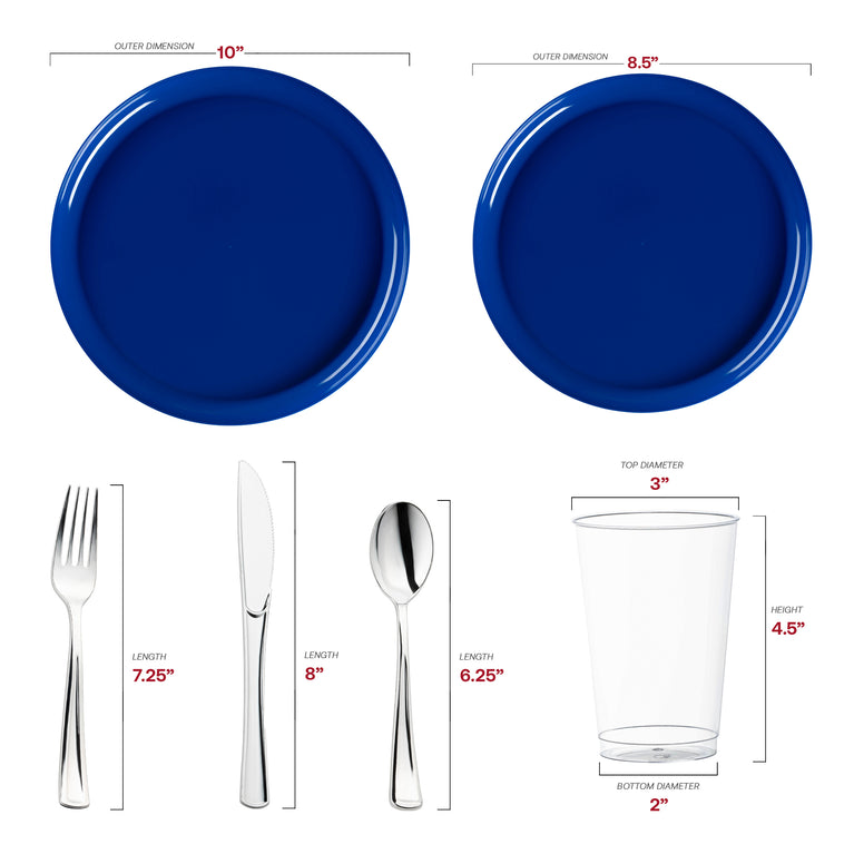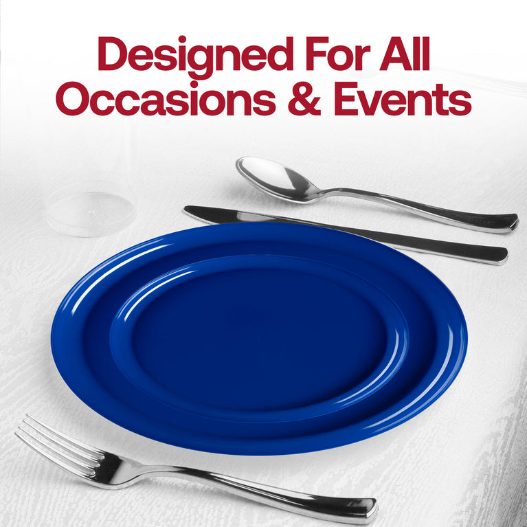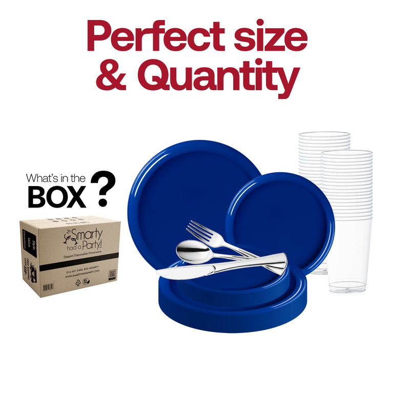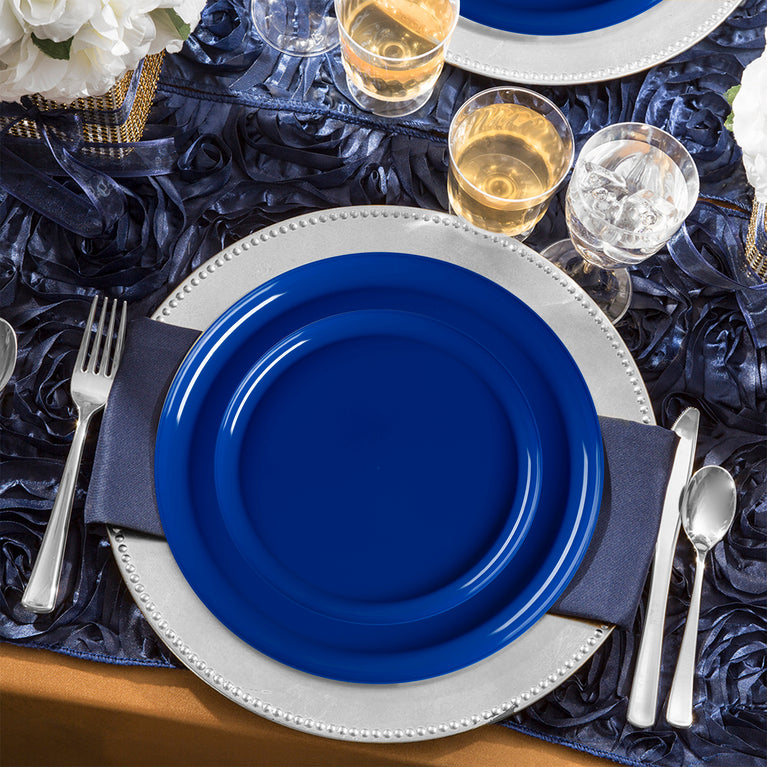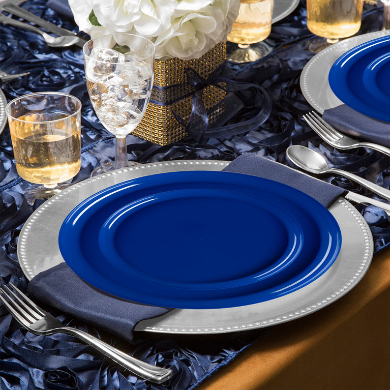 Solid Blue Flat Round Disposable Plastic Wedding Value Set