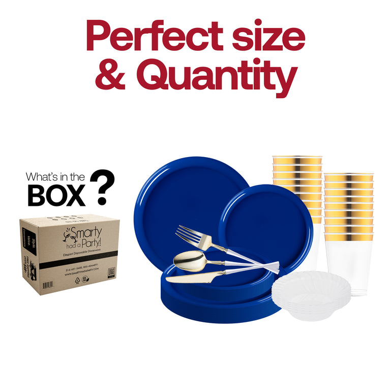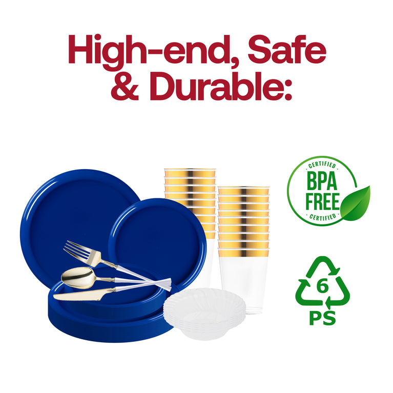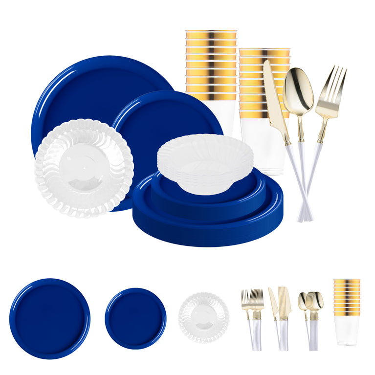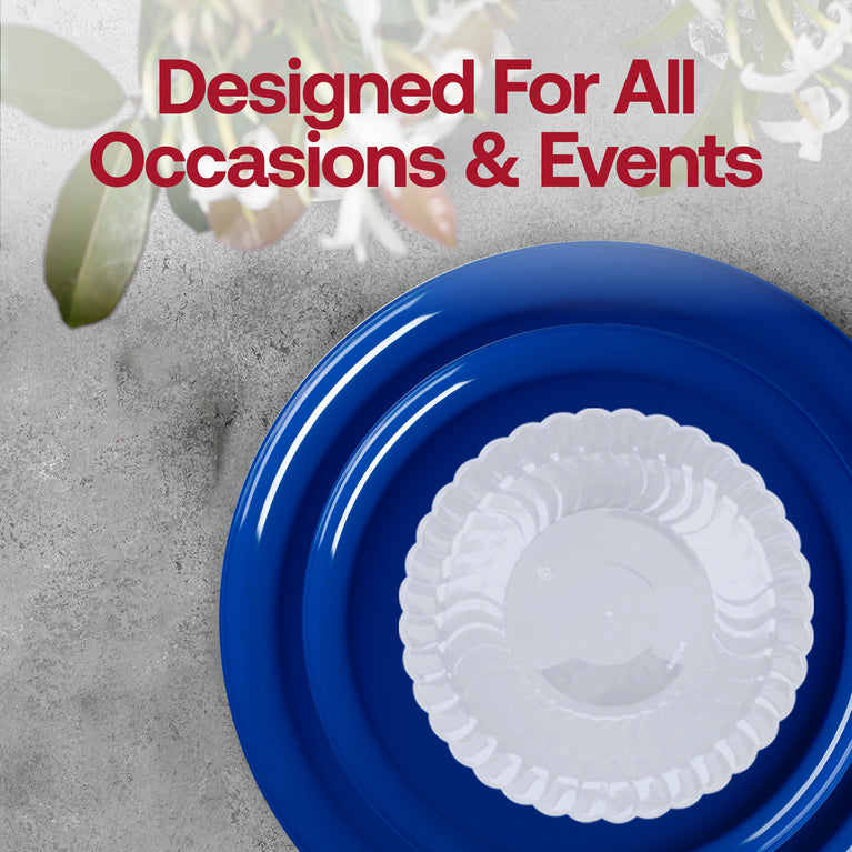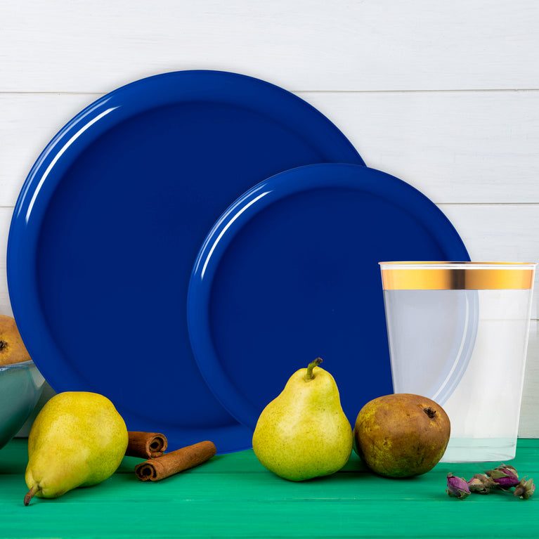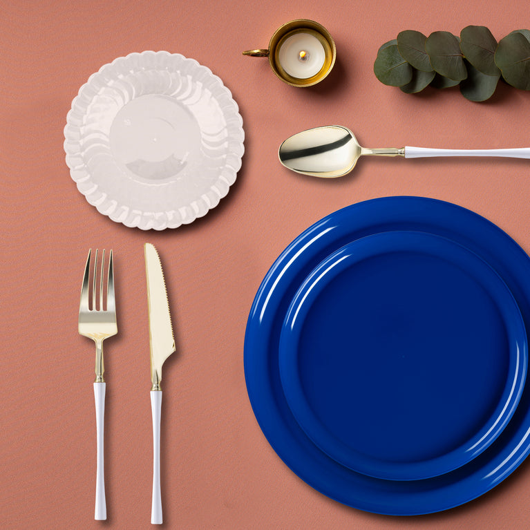 Solid Blue Flat Round Disposable Plastic Tableware Set
