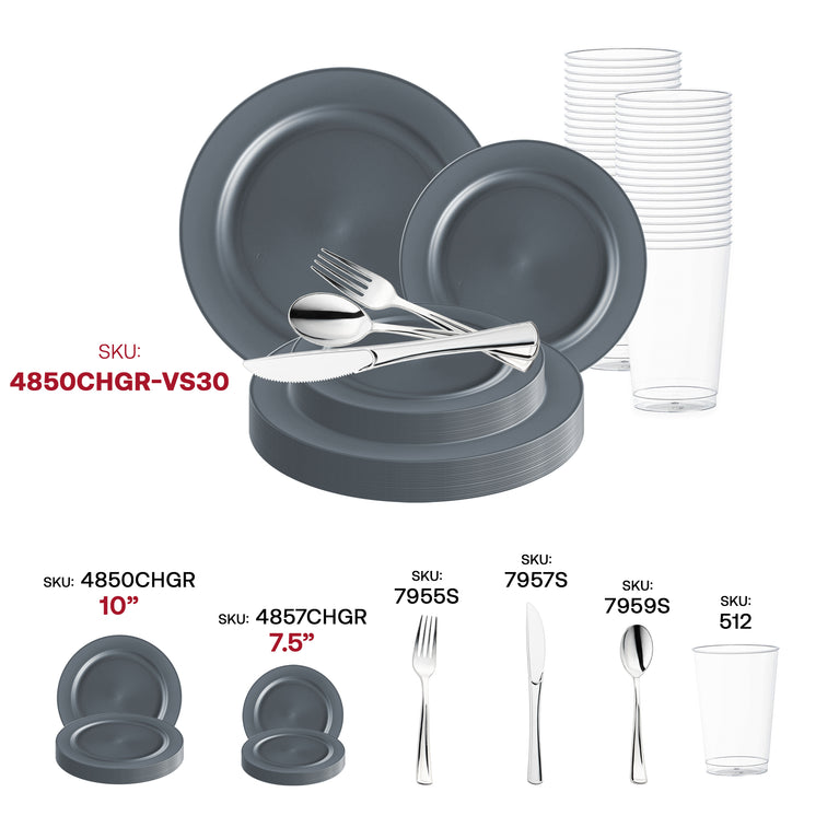 Matte Charcoal Gray Round Disposable Plastic Wedding Value Set