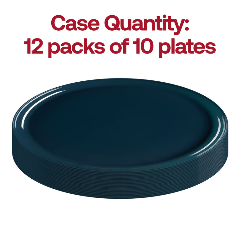 Navy Flat Round Disposable Plastic Dinner Plates (10")