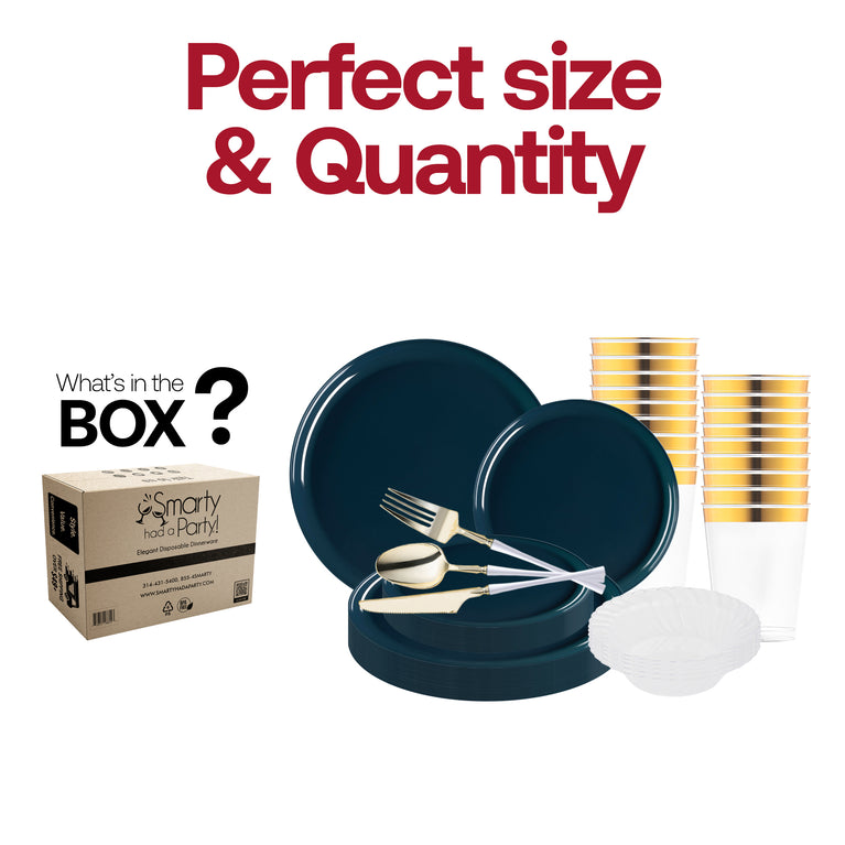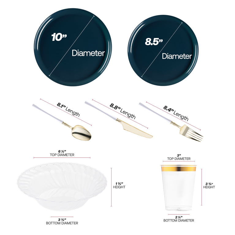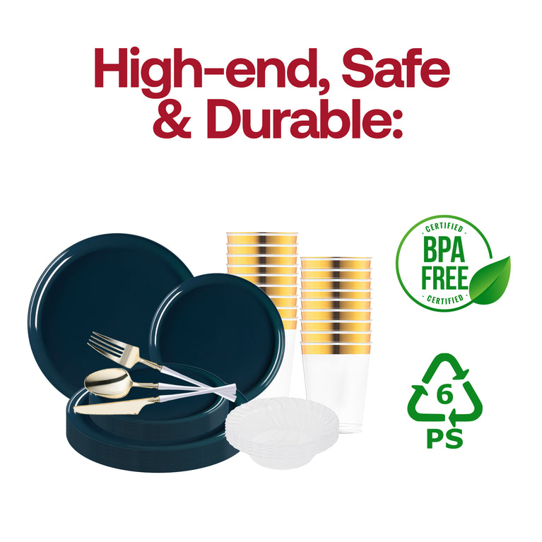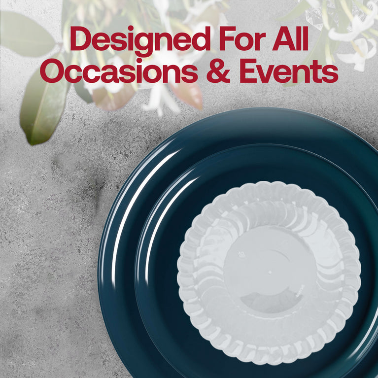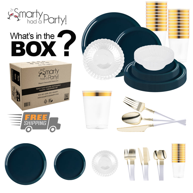 Navy Flat Round Disposable Plastic Tableware Set