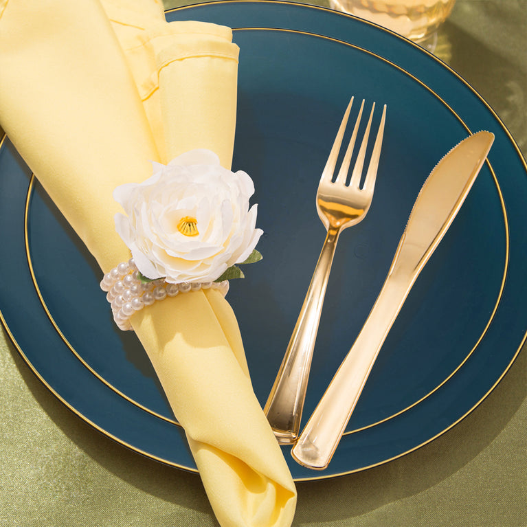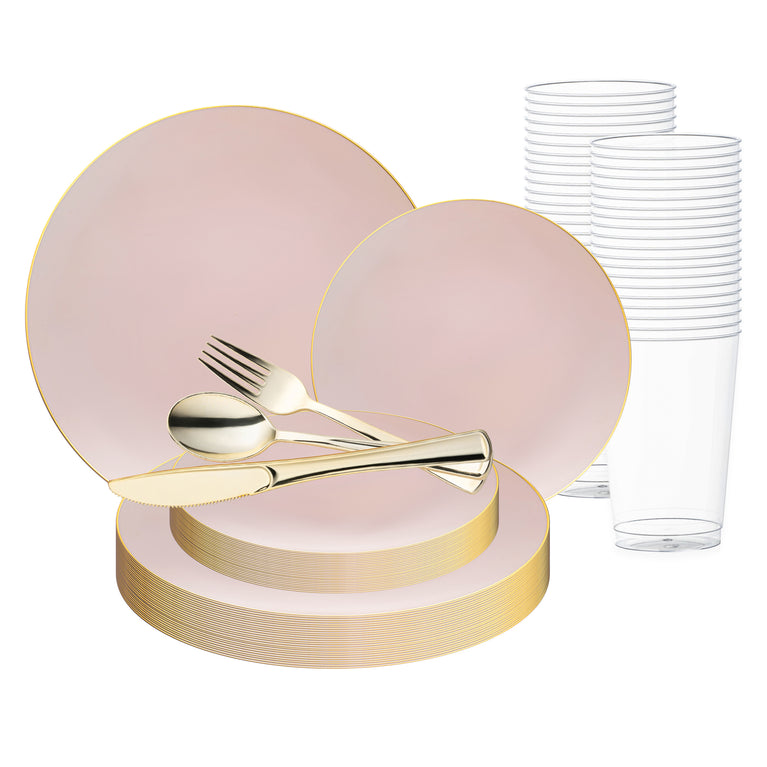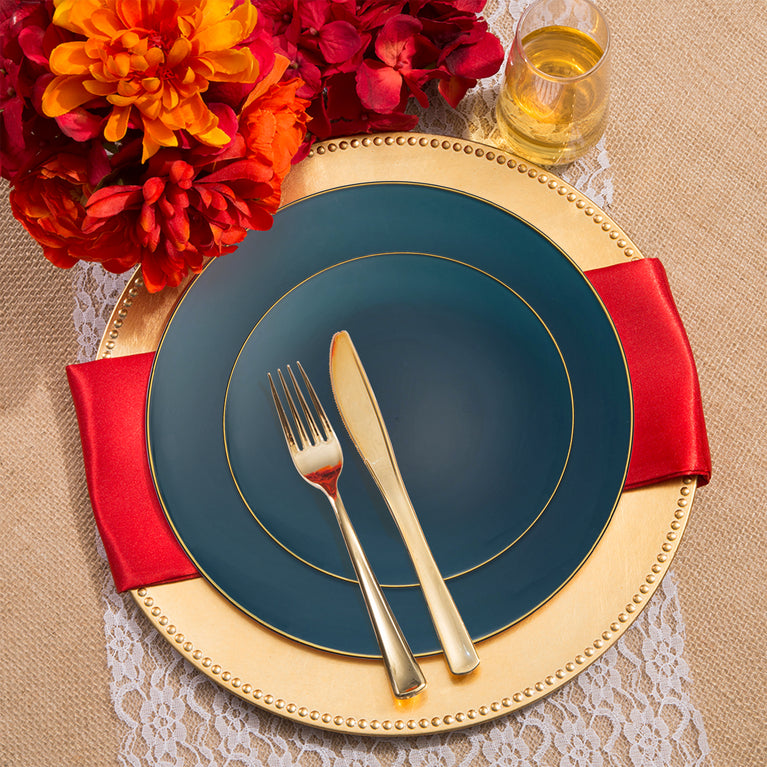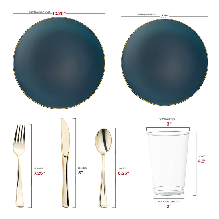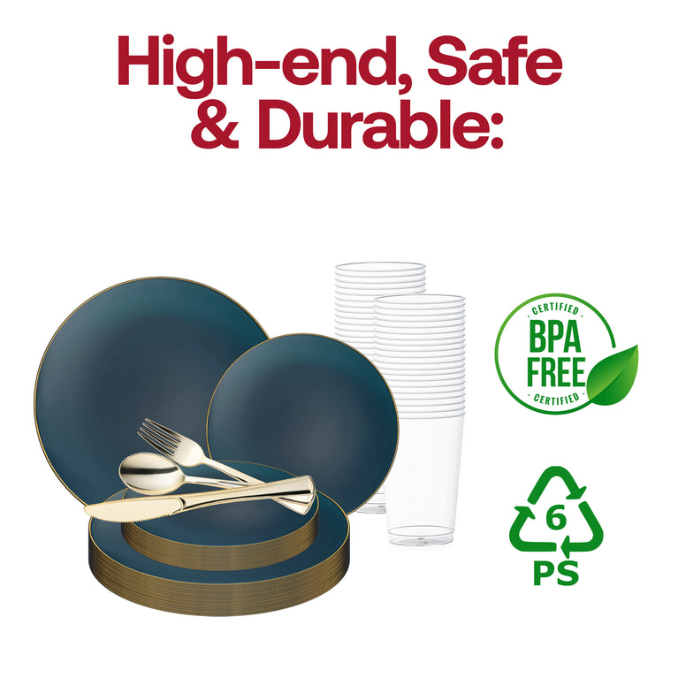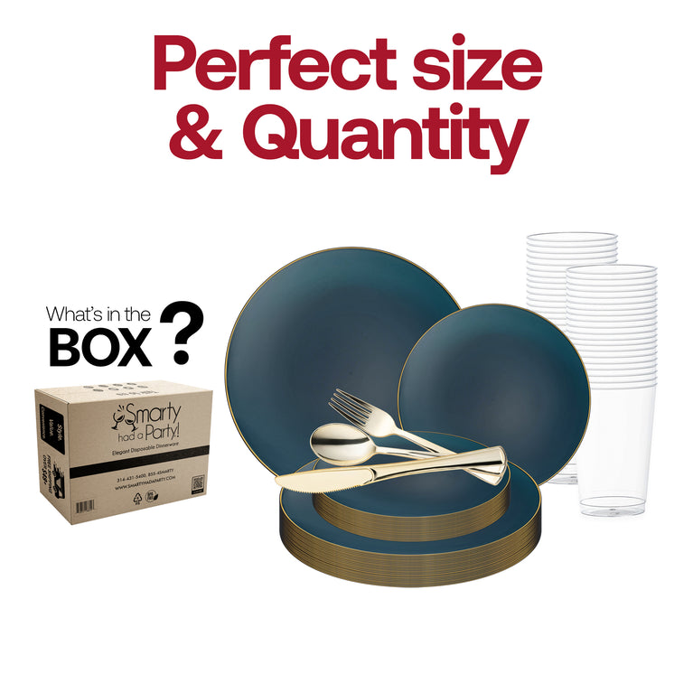 Navy with Gold Rim Organic Round Disposable Plastic Wedding Value Set