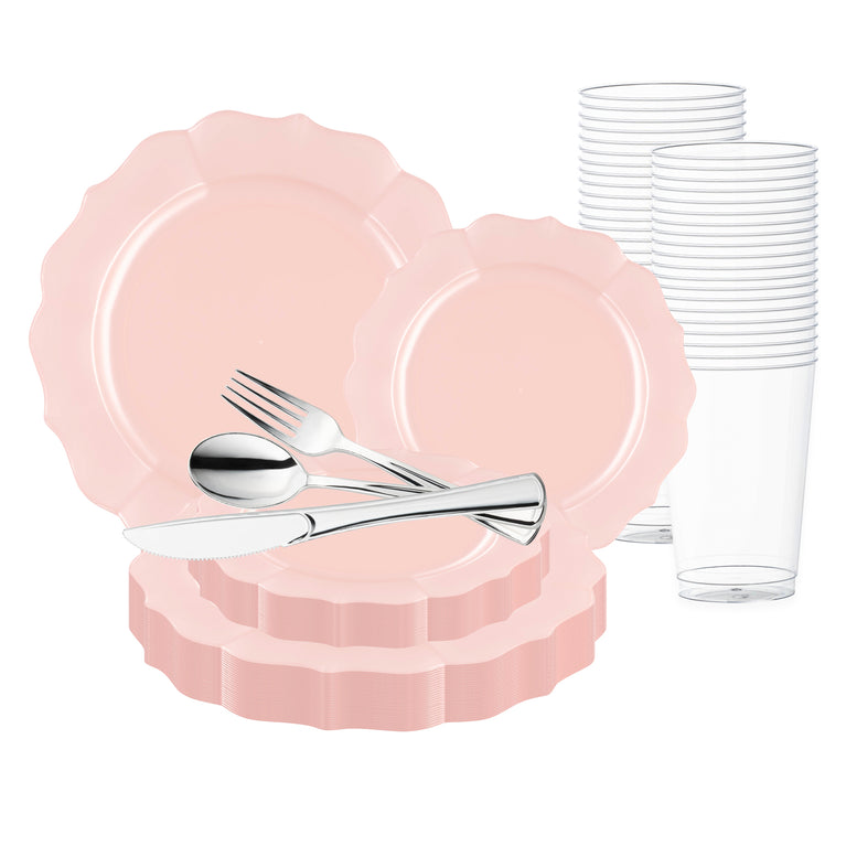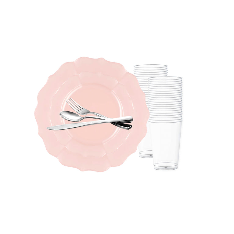 Pearl Pink Round Lotus Plastic Wedding Value Set