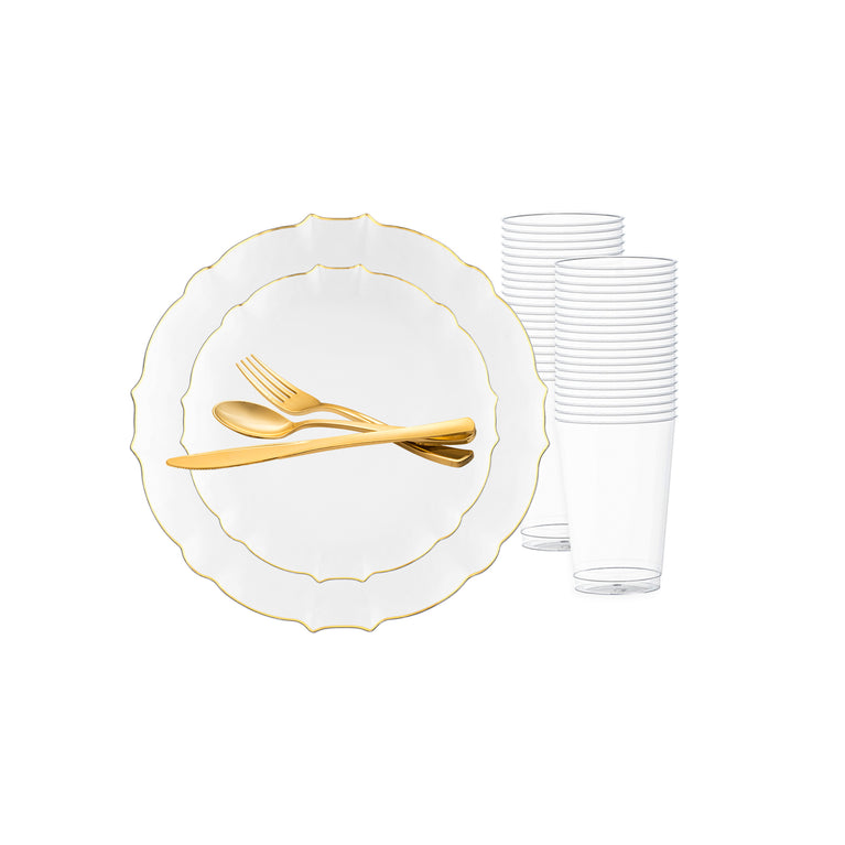 - Service for 120: 120 Dinner plates, 120 salad plates, 120 forks, 120 spoons, 120 knives and 120 12 oz. Tumblers