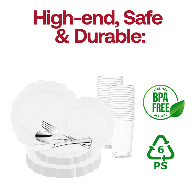 - Service for 120: 120 Dinner plates, 120 salad plates, 120 forks, 120 spoons, 120 knives and 120 12 oz. Tumblers
