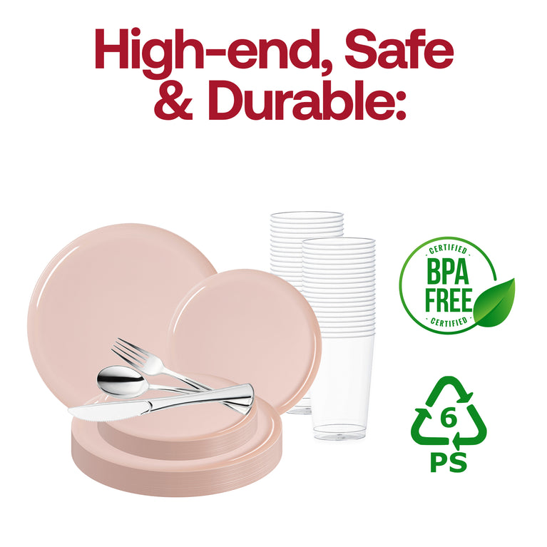 Pink Flat Round Disposable Plastic Wedding Value Set