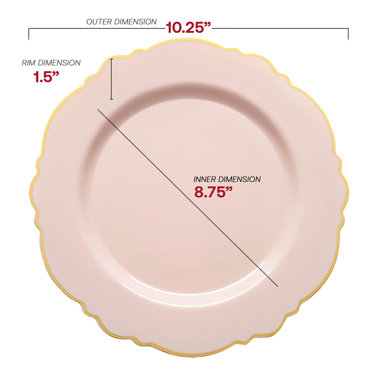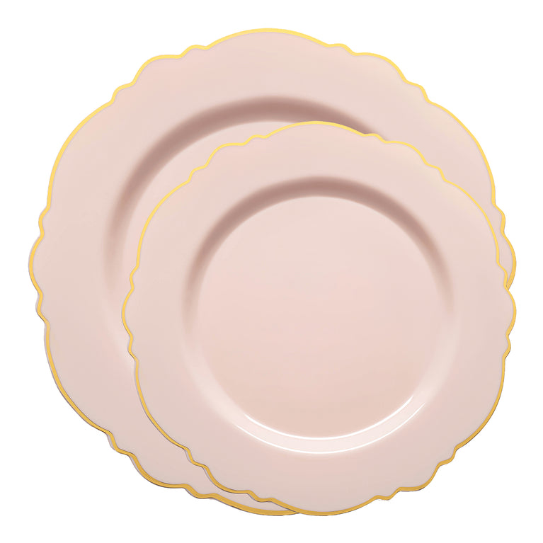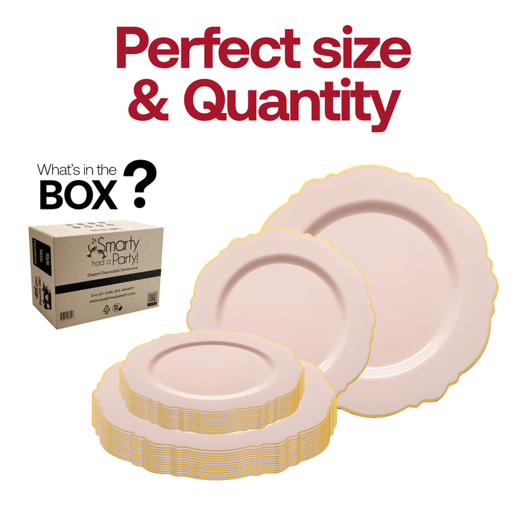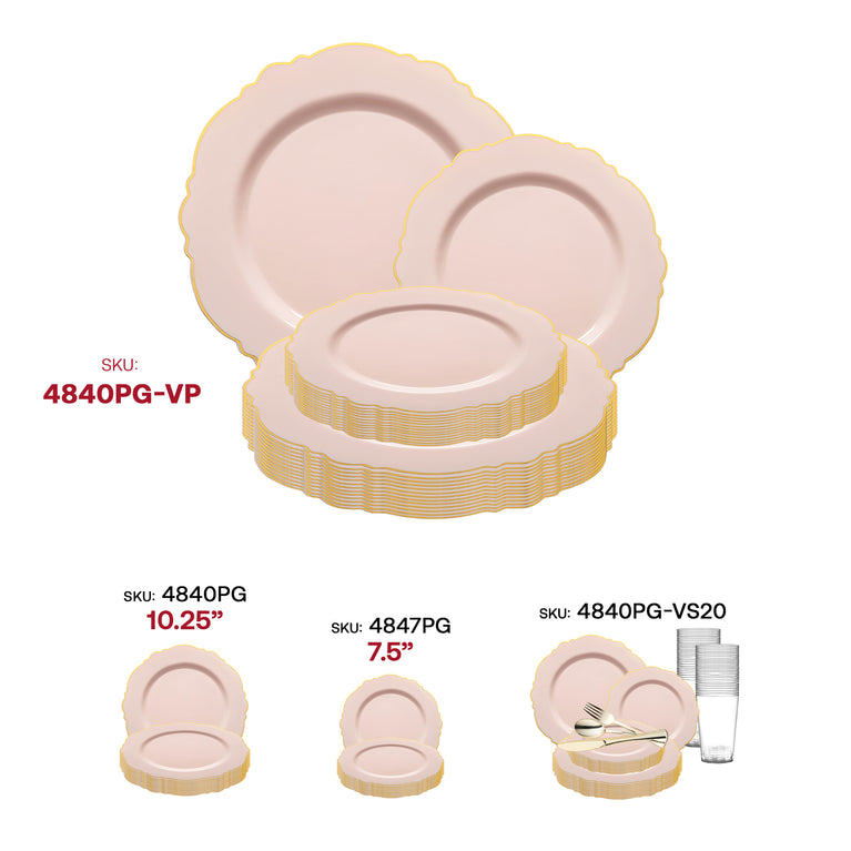 Pink with Gold Rim Round Blossom Disposable Plastic Dinnerware Value Set