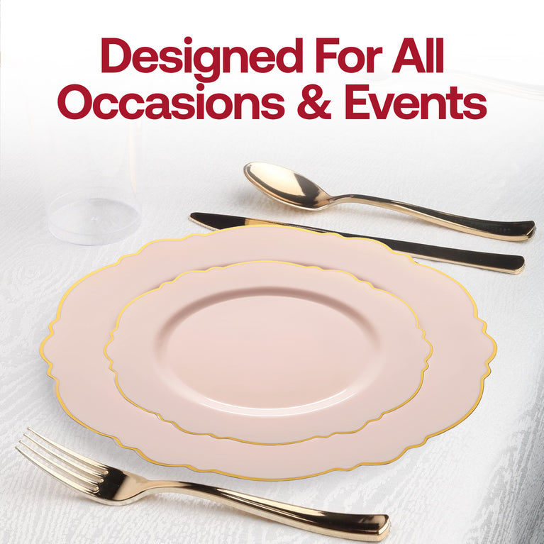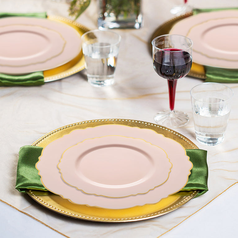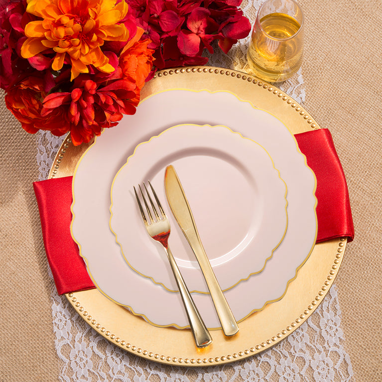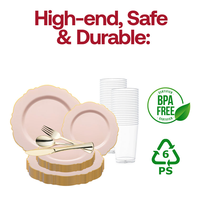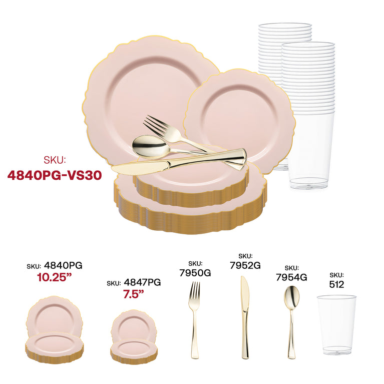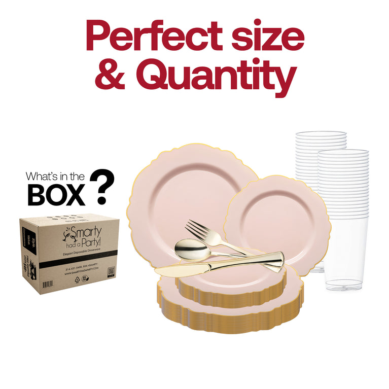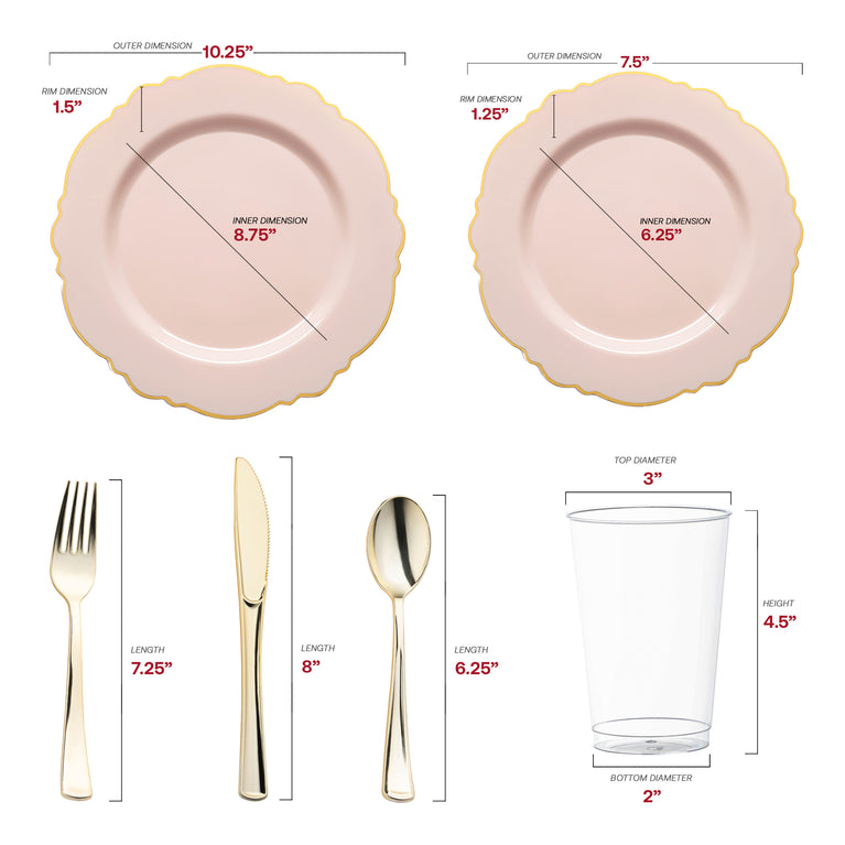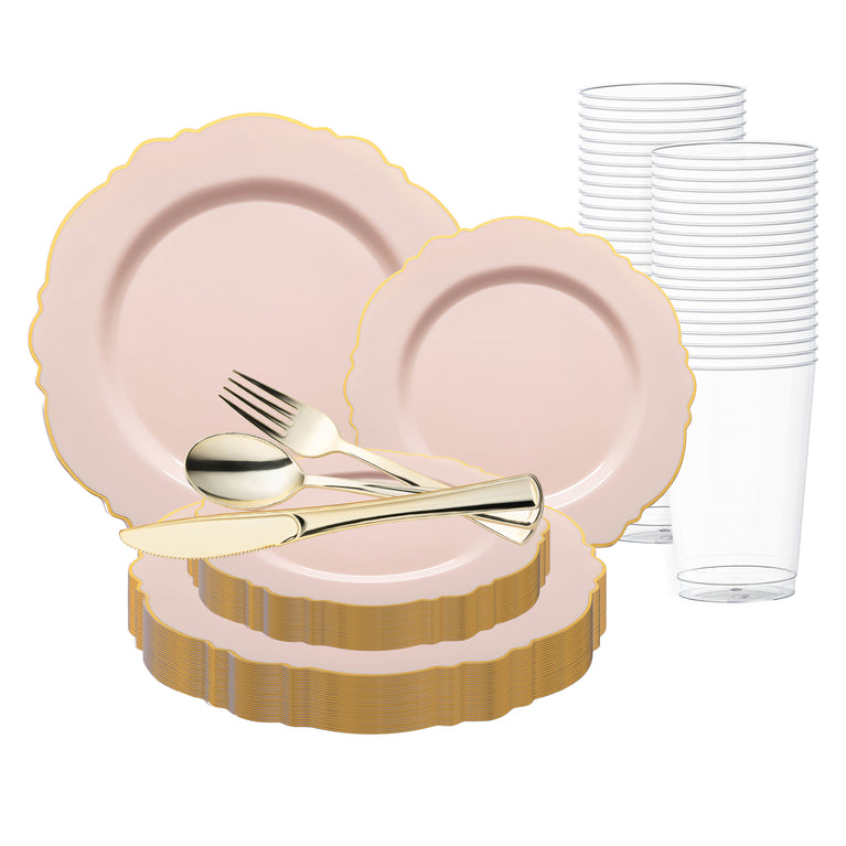 Pink with Gold Rim Round Blossom Disposable Plastic Wedding Value Set
