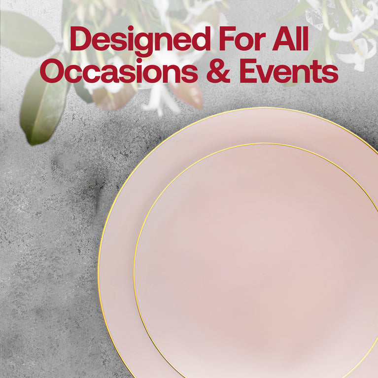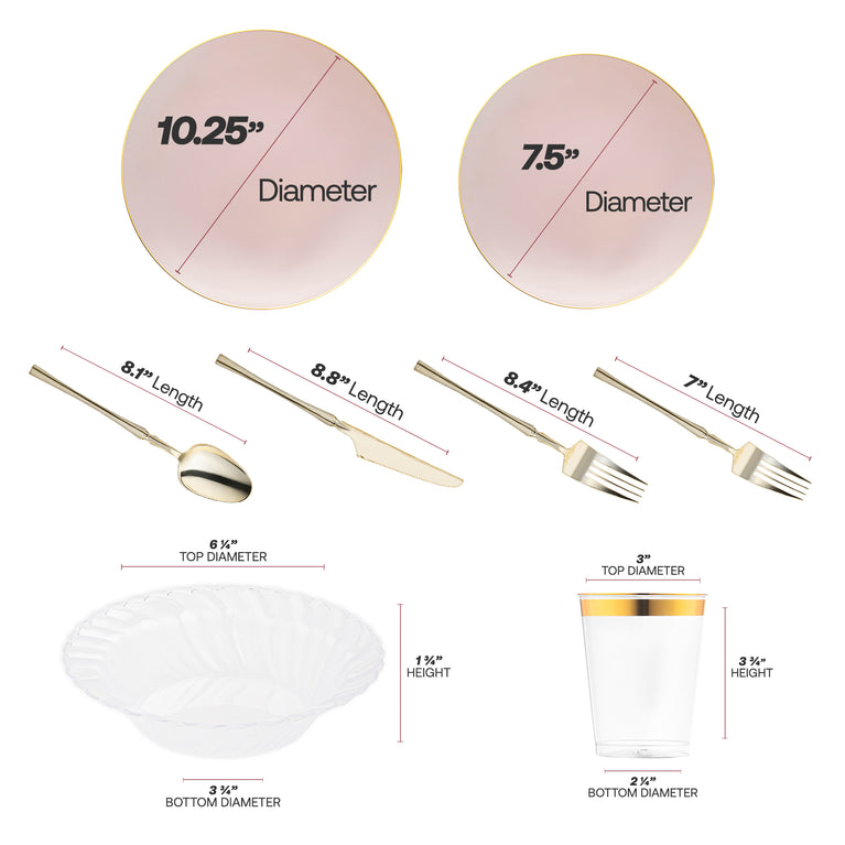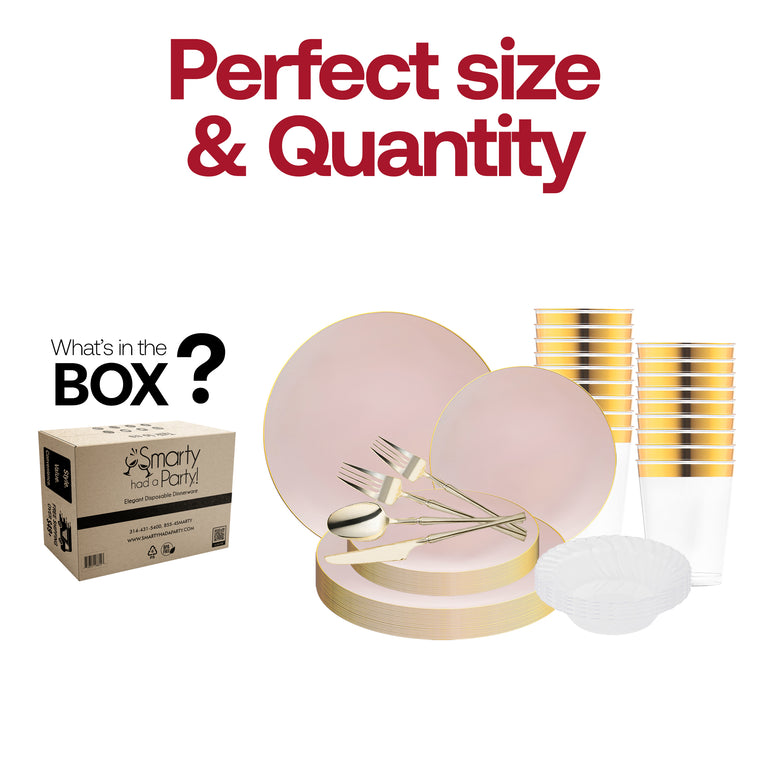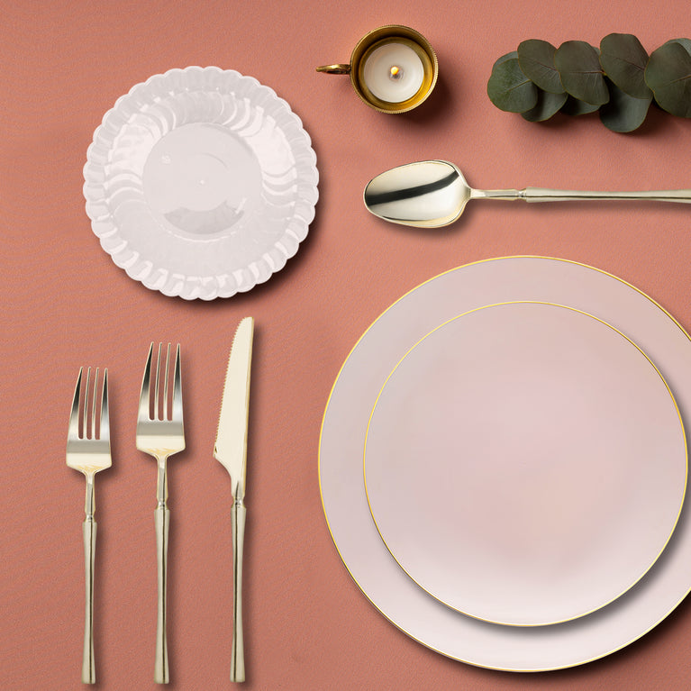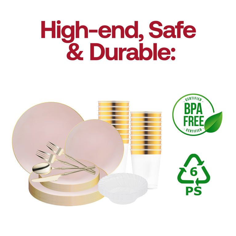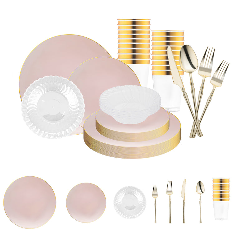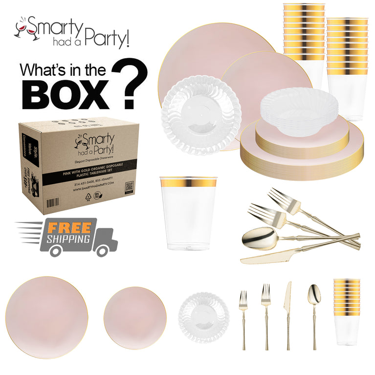 Pink with Gold Organic Disposable Plastic Tableware Set