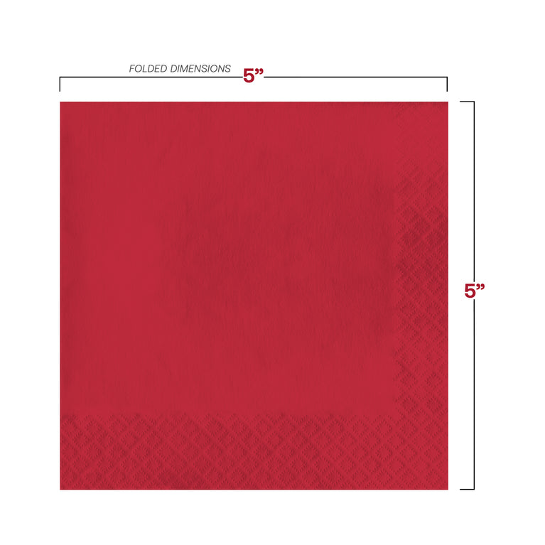 Ideal for parties, festive gatherings, and special events, these premium cocktail napkins are the perfect way to make guests feel special. With the traditional elegant square shape and vibrant red color, these napkins can easily match various table settings. In addition, the unique texture of the paper napkins adds elegance to the event by allowing the napkins to absorb excess moisture and grease easily.