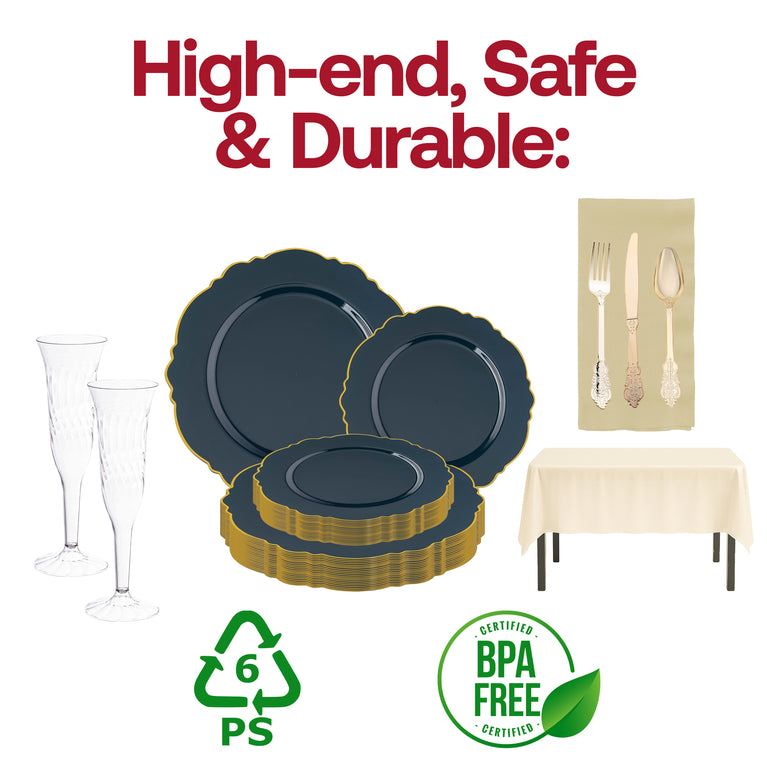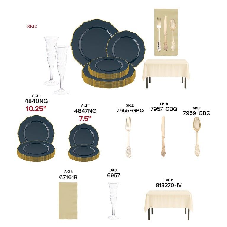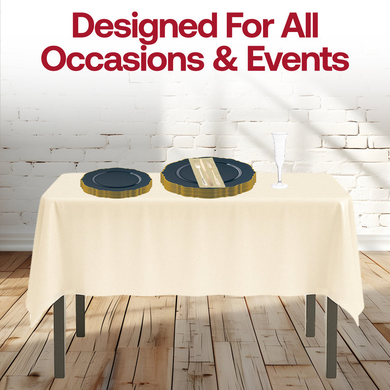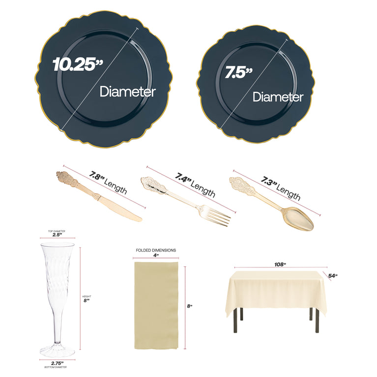 - Service for 60: 60 Dinner Plates, 60 Salad Plates, 60 Forks, 60 Spoons, 60 Knives, 8 Tablecloths, 100 Dinner Napkins and 60 Champagne Flutes