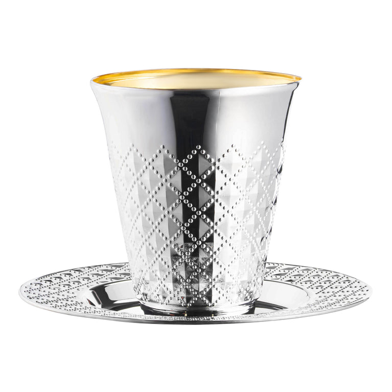 Shiny Metallic Aluminum Silver Round Plastic Saucers and Kiddush Cup Value Set